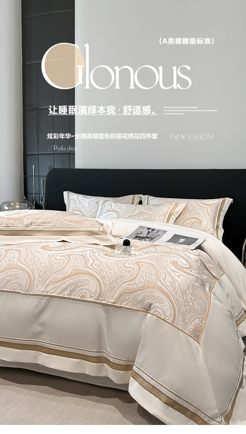 当前位置: 91家纺网 > 商品网购 > 床品套件 > 四件套 > 全棉普通四件套 > 博纳家纺 2026春夏新款全棉纯棉高精密色织提花绣花四件套-炫彩年华 炫彩年华-象牙白