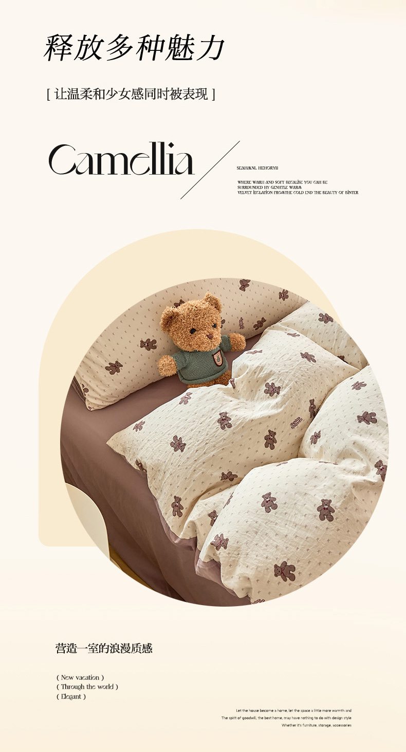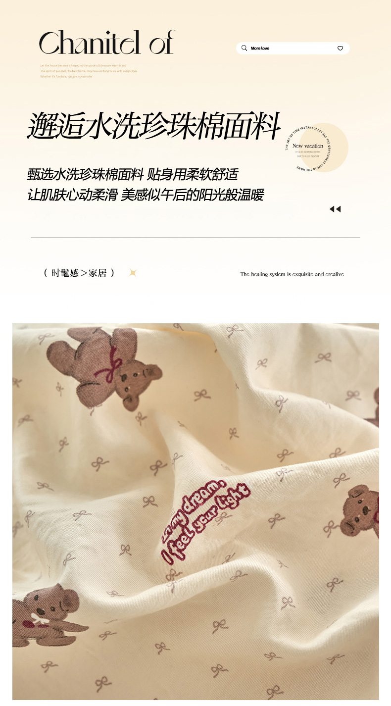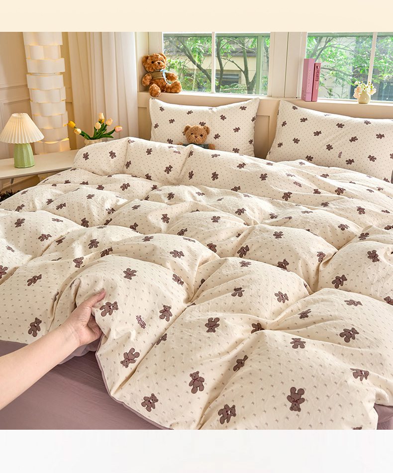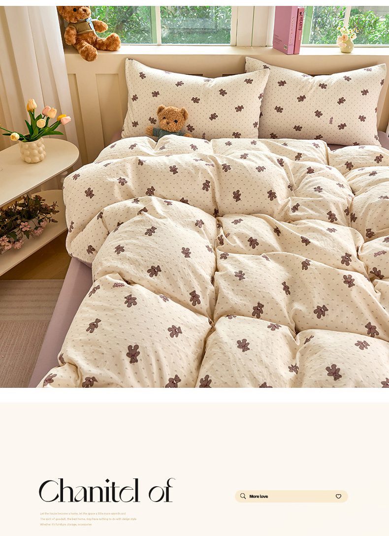 当前位置: 91家纺网 > 商品网购 > 床品套件 > 四件套 > 水洗棉四件套 > 卢赛尔 2026新款古法水洗仿棉云感棉学生三件套四件套 小棕熊