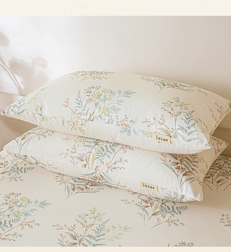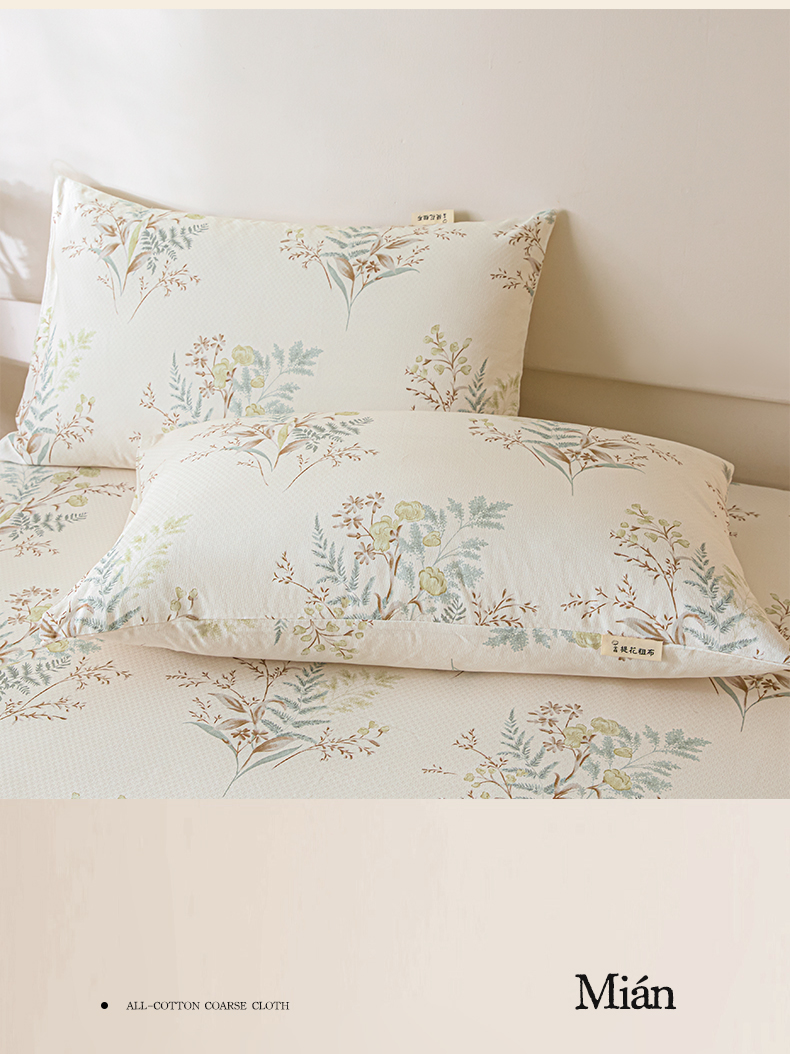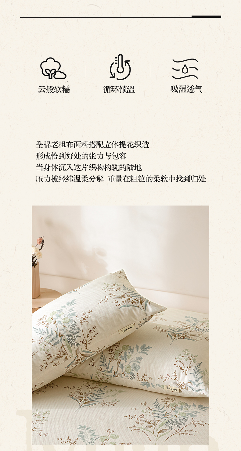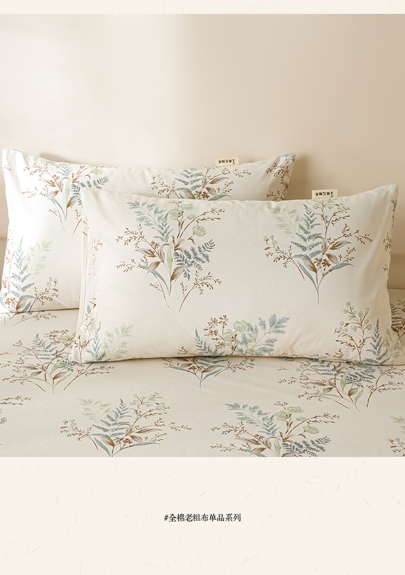 涵宸家纺 2026新款全棉提花老粗布-单枕套 枕套-绿意然