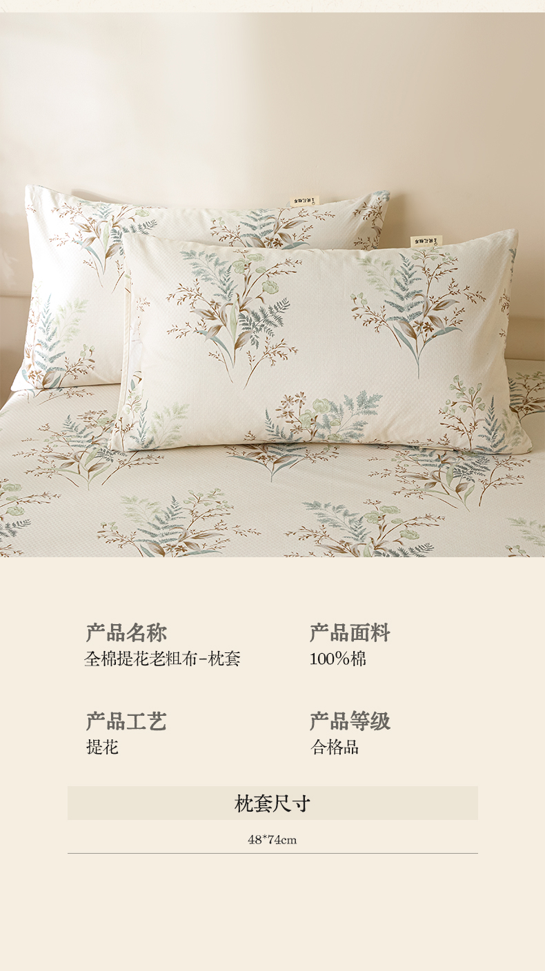 商品名称:涵宸家纺 2026新款全棉提花老粗布-单枕套 枕套-绿意然