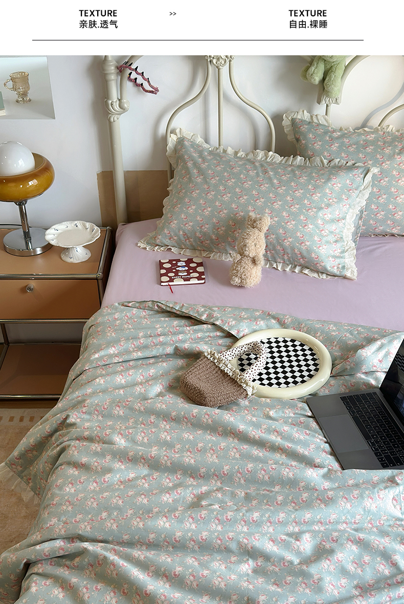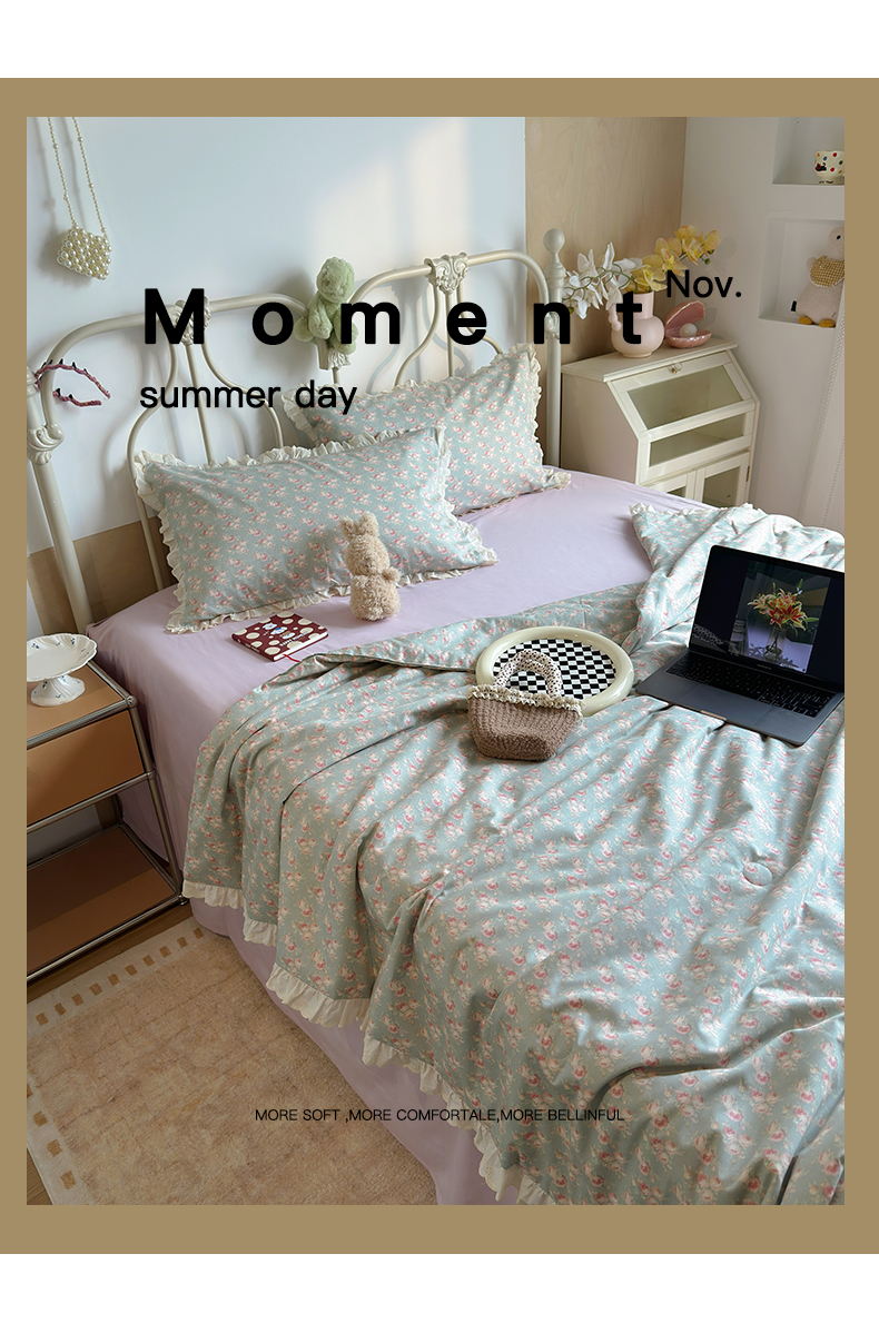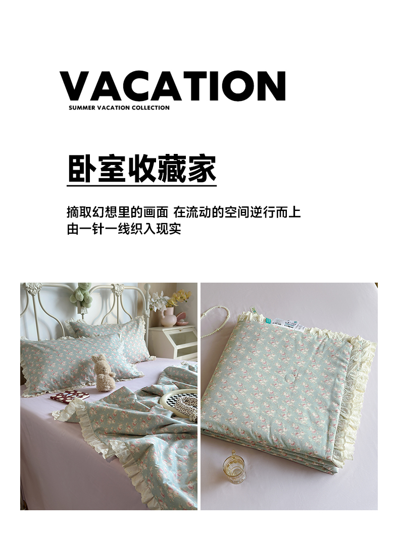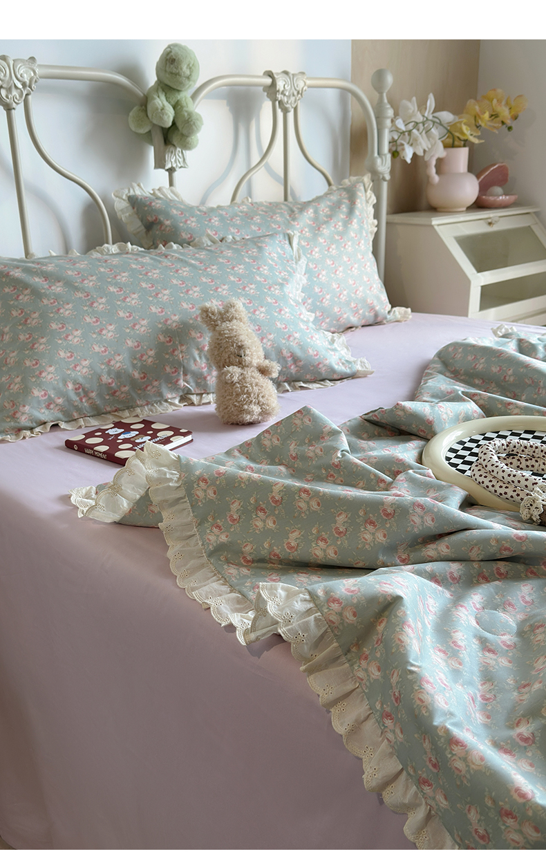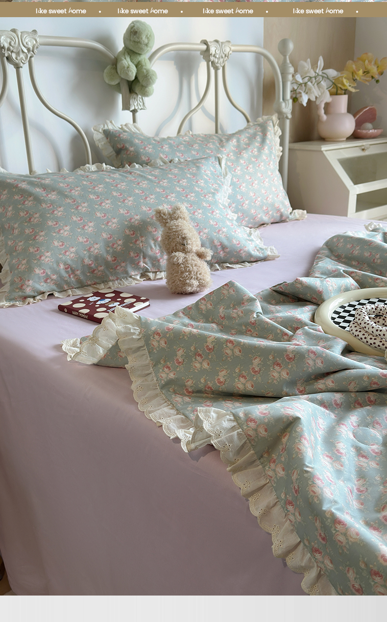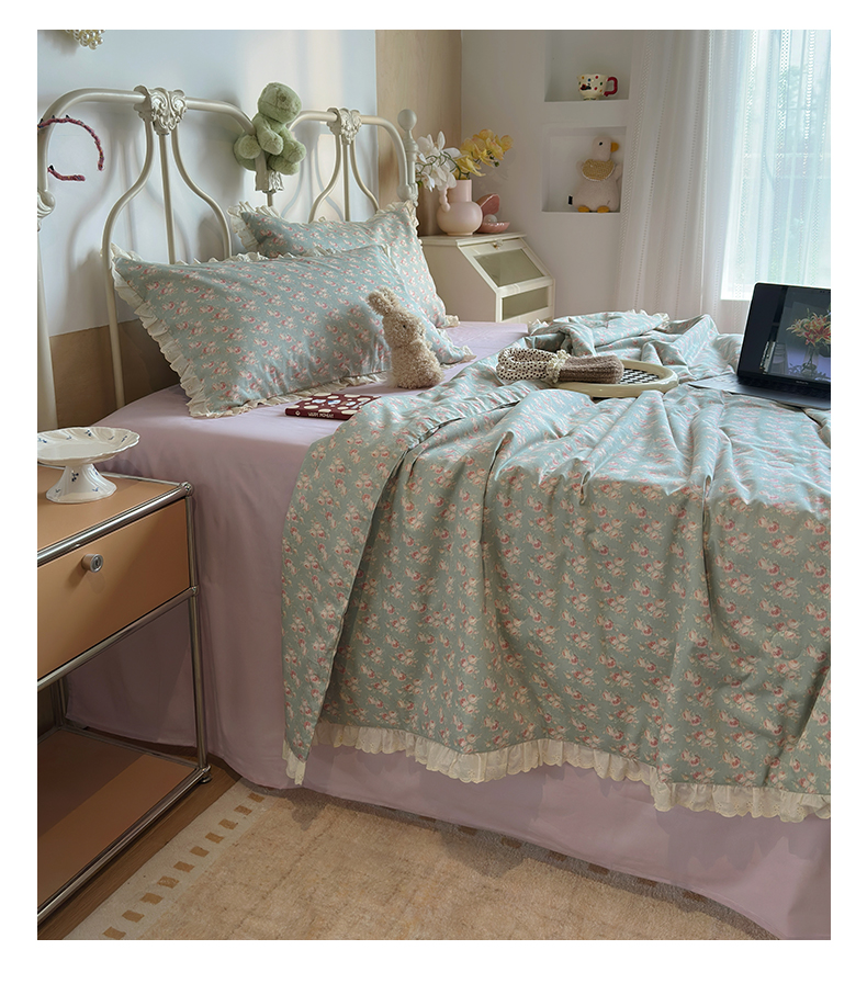 当前位置: 91家纺网 > 商品网购 > 床品套件 > 四件套 > 夏被四件套 > 绫韵家纺 2026新品夏季韩式浪漫小花边空调被夏被薄被子套件系列 黛蕊幽梦