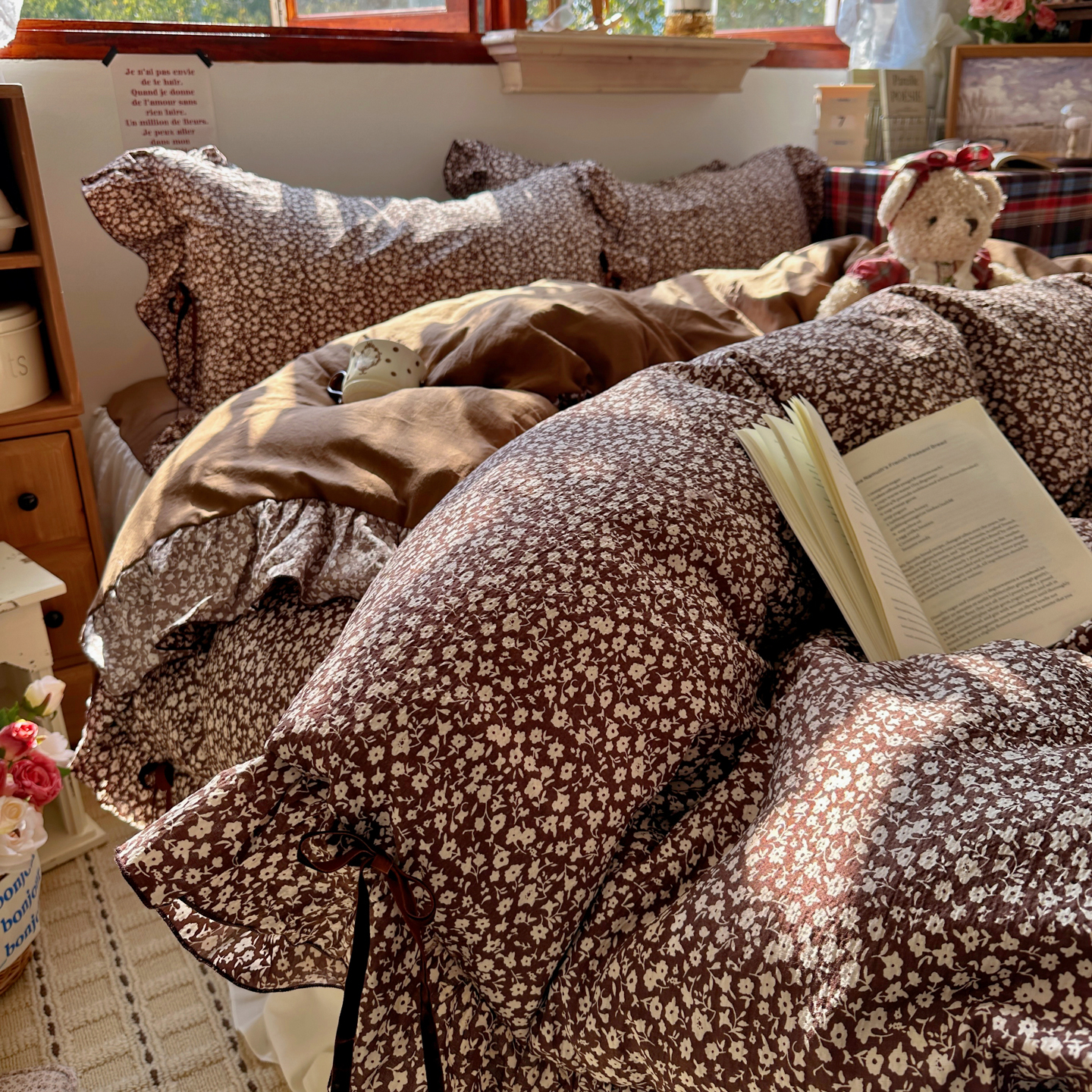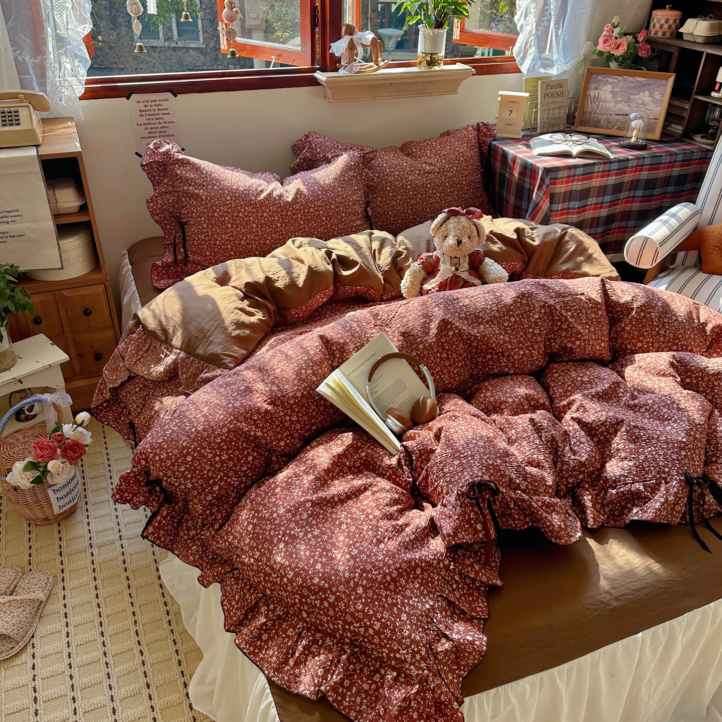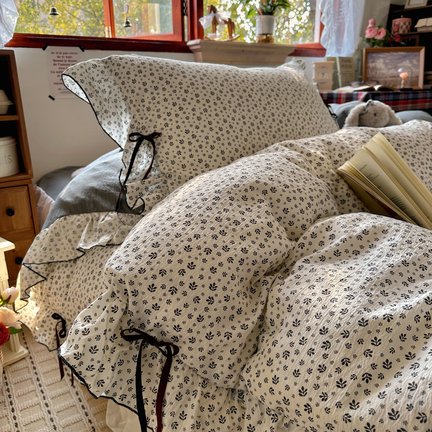 当前位置: 91家纺网 > 商品网购 > 床品套件 > 四件套 > 其它四件套 > 阿曼达 2026新款日韩系复古印花小碎花花边蝴蝶结系列四件套 复古蝴蝶结-林间序-红