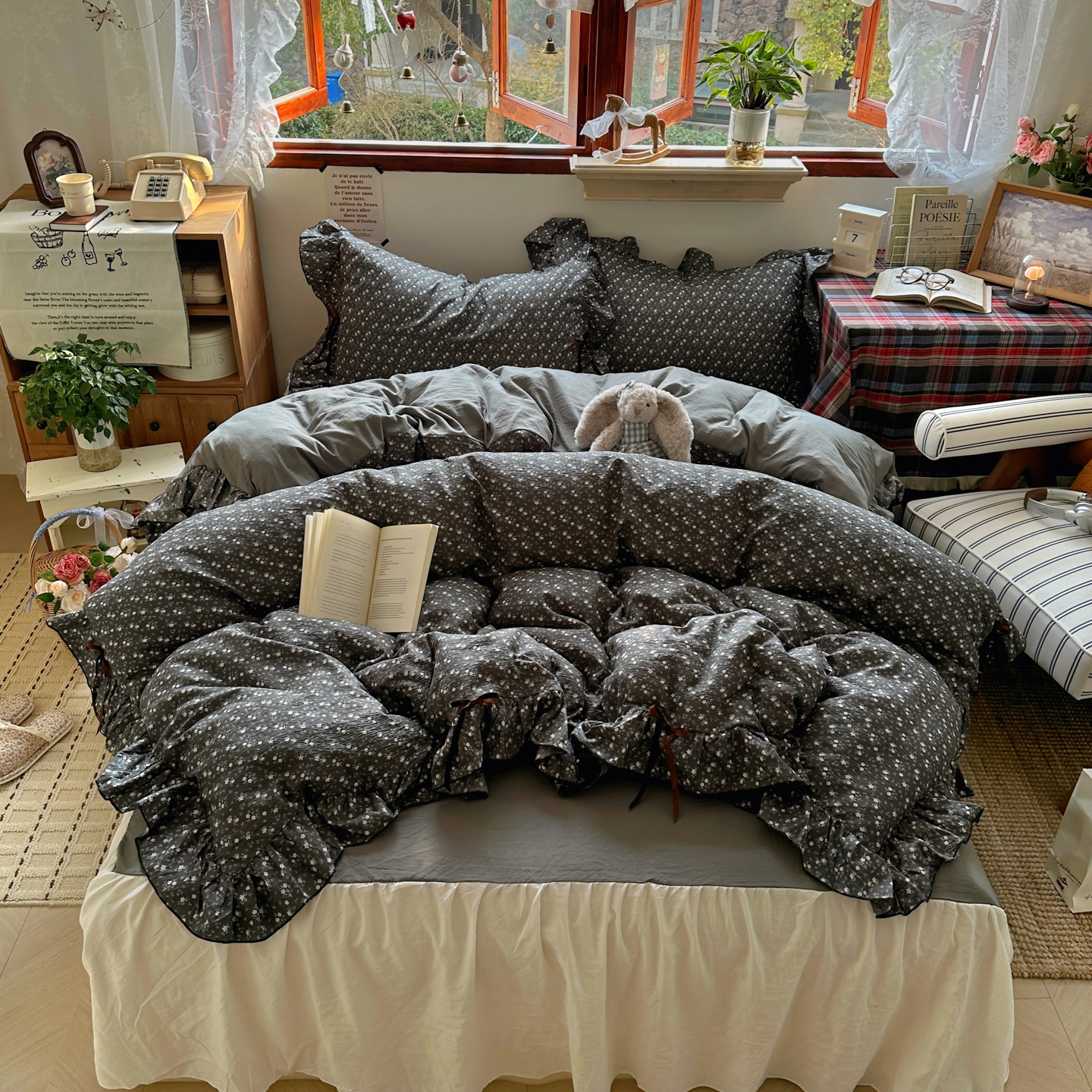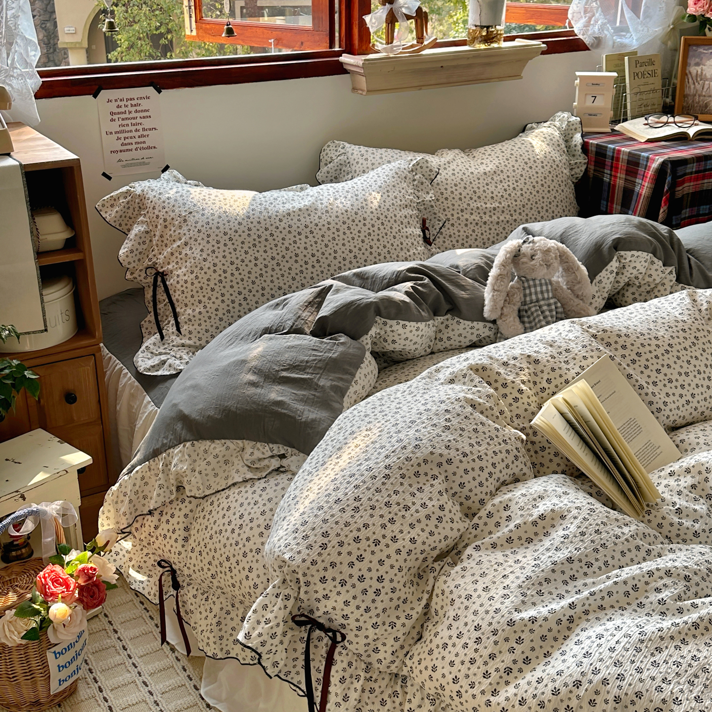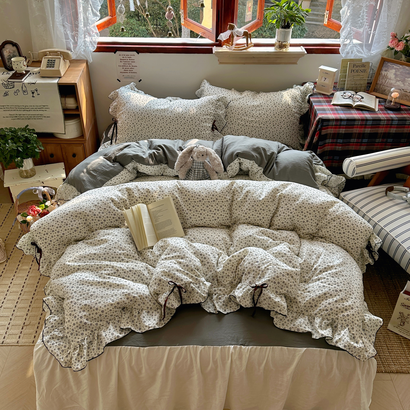 当前位置: 91家纺网 > 商品网购 > 床品套件 > 四件套 > 其它四件套 > 阿曼达 2026新款日韩系复古印花小碎花花边蝴蝶结系列四件套 复古蝴蝶结-林间序-红