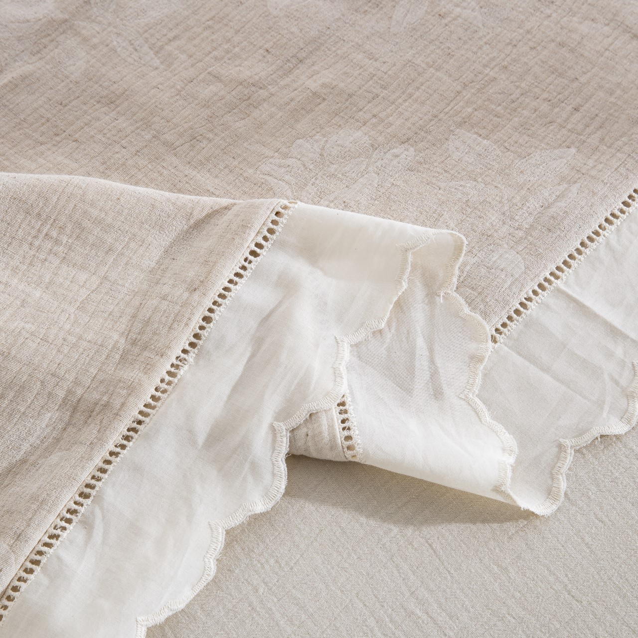 双层纱家居 2026新款浣溪沙棉麻刺绣花边款四件套 浣溪沙-咖