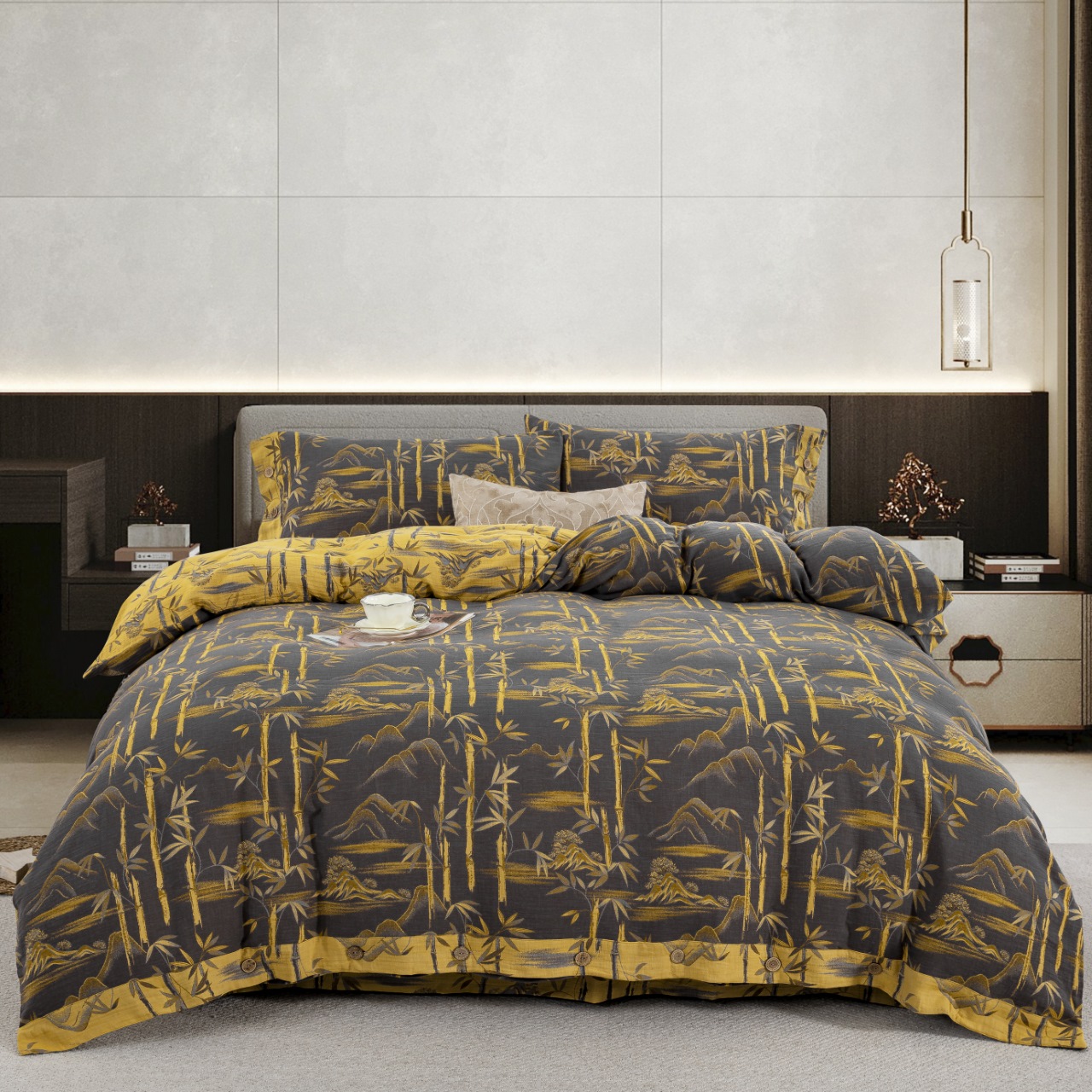 (总)双层纱家居 2024新款双层纱四件套,百福蓝,梦百合,水墨米黄,水墨米兰,西雅图蓝