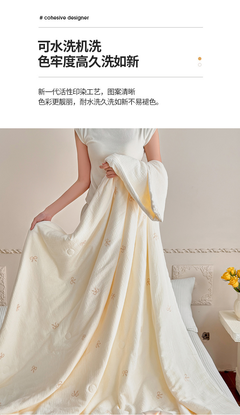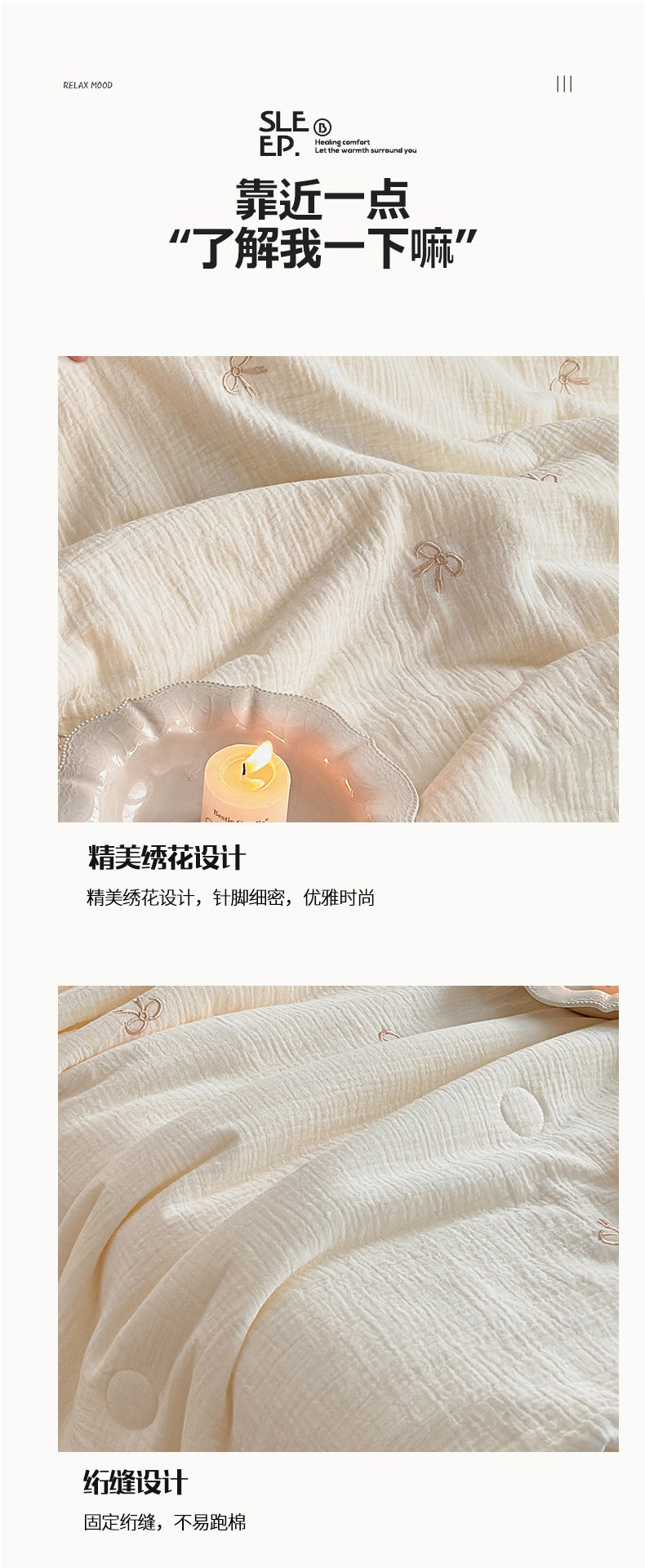 • 91家纺网 家纺一手货源 找家纺 木楌家居 2026新款全棉皱皱纱刺绣款夏被床盖四件套 蝴蝶结