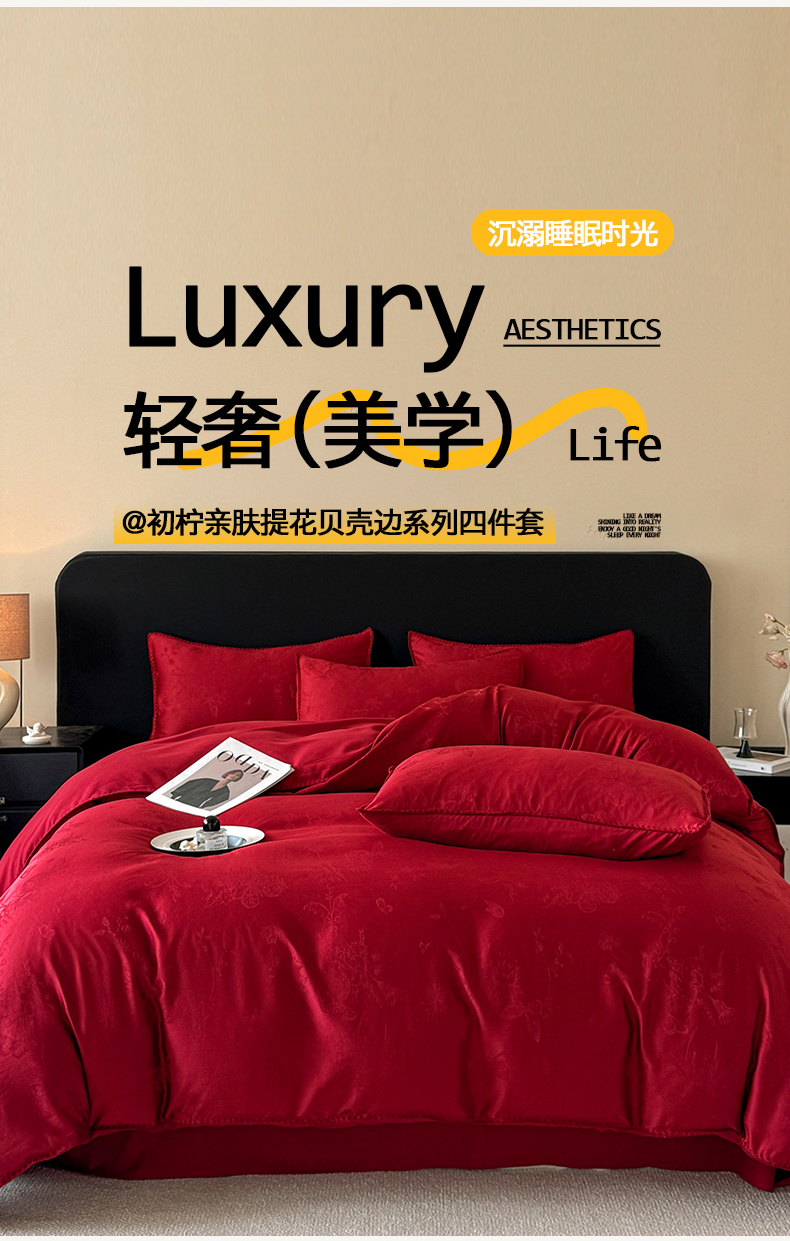 当前位置: 91家纺网 > 商品网购 > 床品套件 > 四件套 > 其它四件套 > 置顶家纺 2026新款亲肤提花贝壳边四件套-初柠 初柠-红