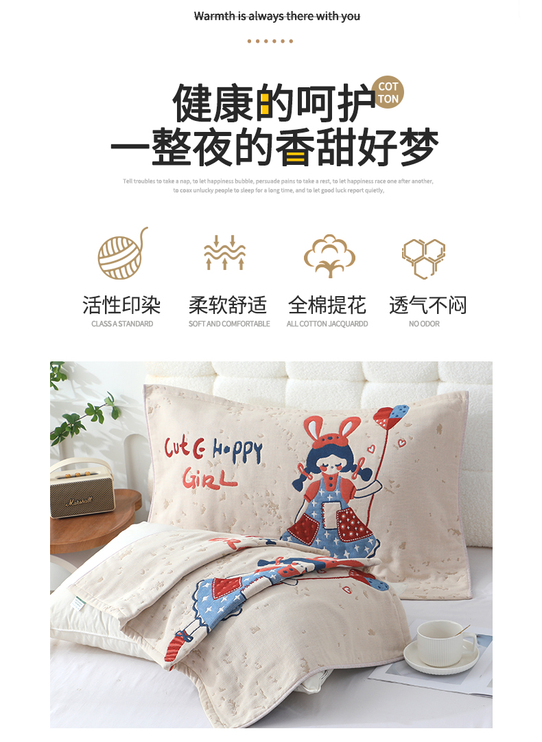 娇兰毛巾 2026新款7A抗菌全棉A类加厚五层纱布加双绑带枕巾 余