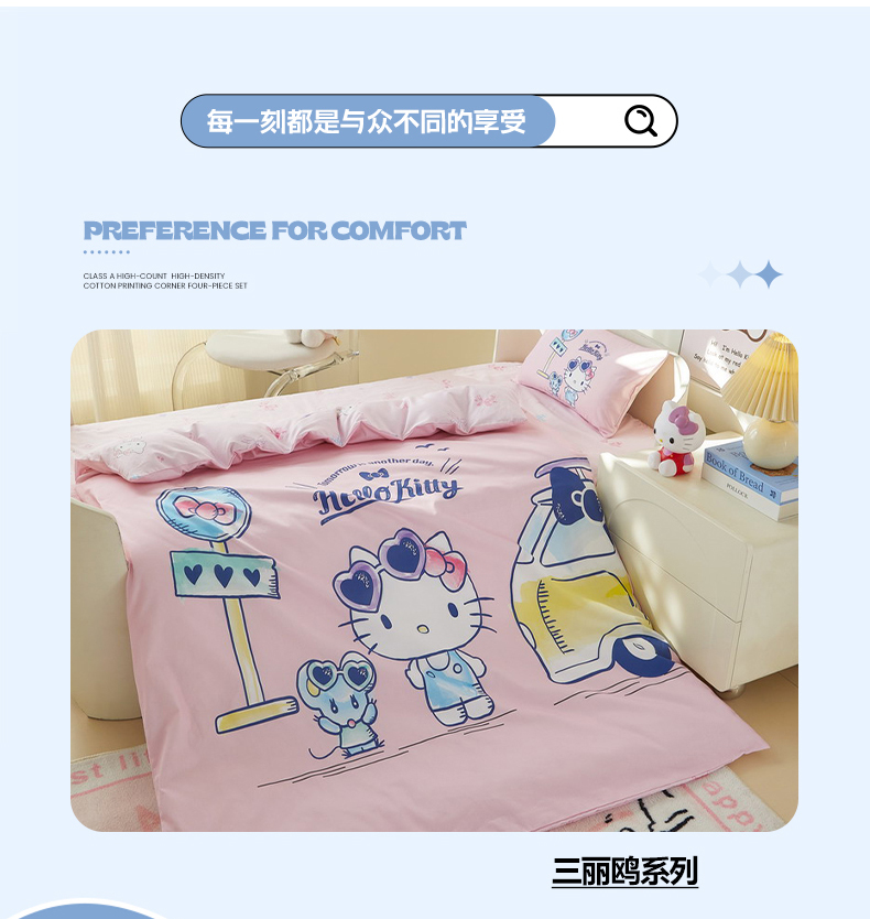 (总)蘭菲家纺 2026新款全棉三丽欧印花卡通四件套,必爱乐奶茶,波点KT,车站KT,大杯奶茶KT,逛街狗,精致狗狗,可爱KT灰,快乐小库,快乐休假,露营快乐,美乐必爱,轻松美乐蒂,涂鸦KT,夏日快乐,小库儿,小库故事