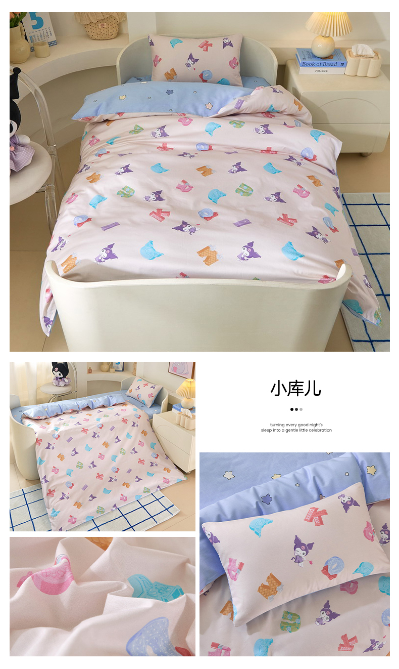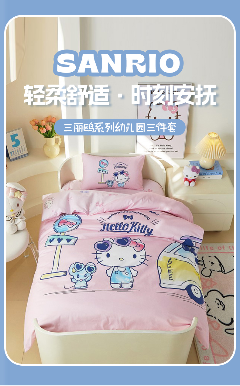 (总)蘭菲家纺 2026新款幼儿园儿童三丽欧系列多件套,必爱乐奶茶,波点KT,车站KT,大杯奶茶,逛街狗,精致狗狗,可爱KT灰,快乐小库,快乐休假,露营快乐,美乐必爱,轻松美乐蒂,涂鸦KT,夏日快乐,小库儿,小库故事