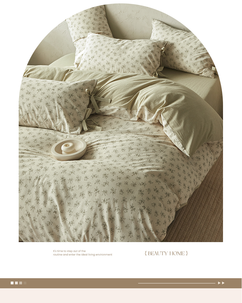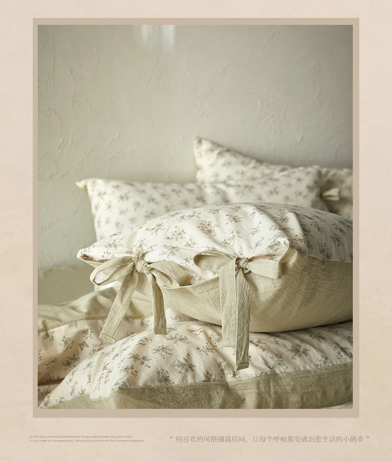 (总)绫韵家纺 2026春夏新款A类印花棉麻蝴蝶结四件套,大地微风,法式风情·蓝,红唇之吻·粉,清风蝶鱼·绿,秋野拾花·粉