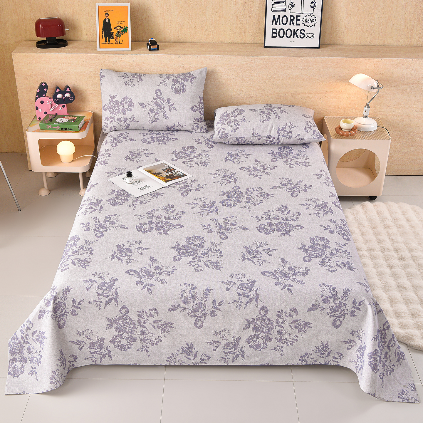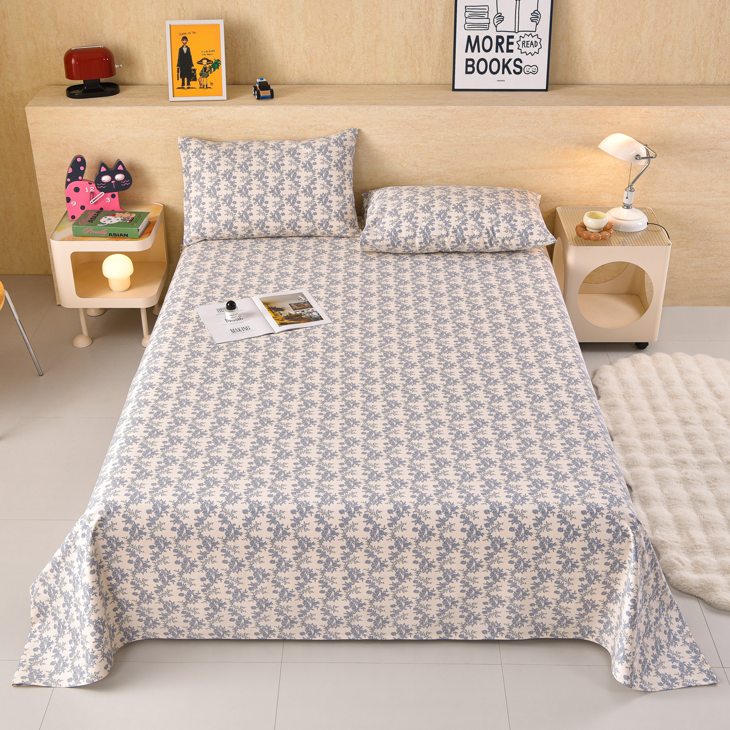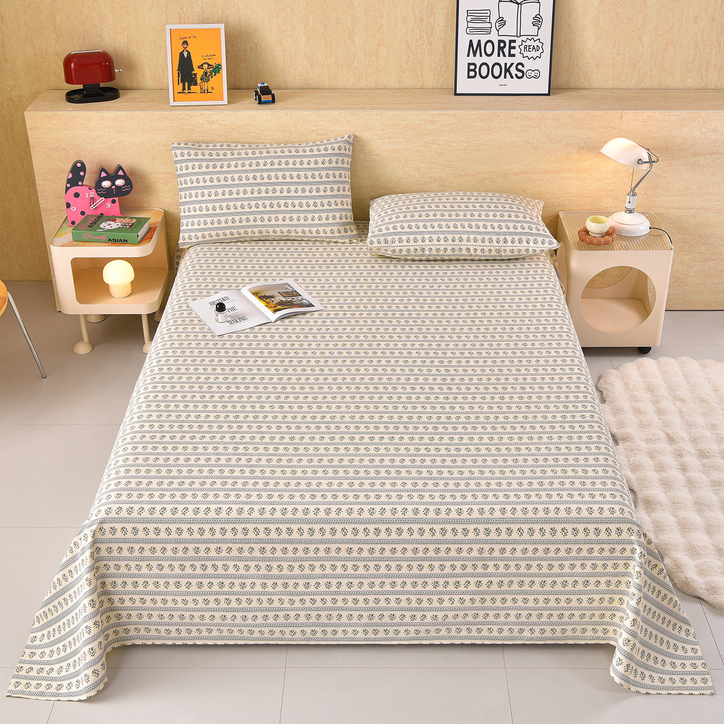 (总)德比尔斯 2026新款原棉老粗布凉席印花床单三件套,波西米亚,草莓甜心,黛紫,迭迭绿,动物乐园,粉格子,粉色猫,草莓,蓝莲花,菱格,萌熊,慕夏,如意棕,童年游戏,西野暮色,相遇-蓝,小狮子,紫嫣