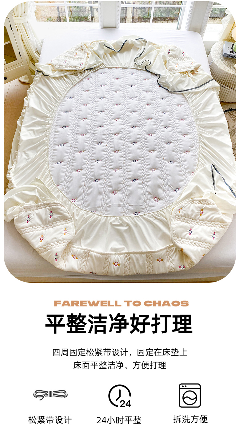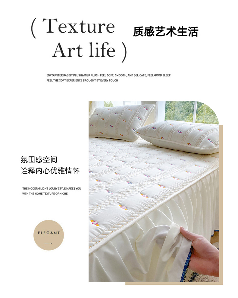 (总)尊康家纺(原磊科) 2026新款奶昔棉抗菌夹棉床裙款床笠-花语系列,花语-薄荷绿,花语-绅士灰,花语-天空蓝,花语-香槟,花语-粉玉,花语-米白