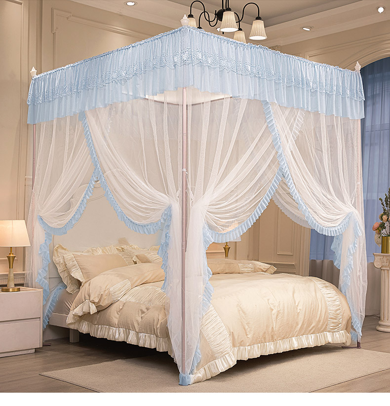 • 91家纺网 家纺一手货源 找家纺 (总)海虹蚊帐 2026新款2601外穿杆三开U型门一体防尘顶加密纱回底床笠款防摔蚊帐,彩虹蓝,幸运灰,幸运蓝,字母灰,字母咖