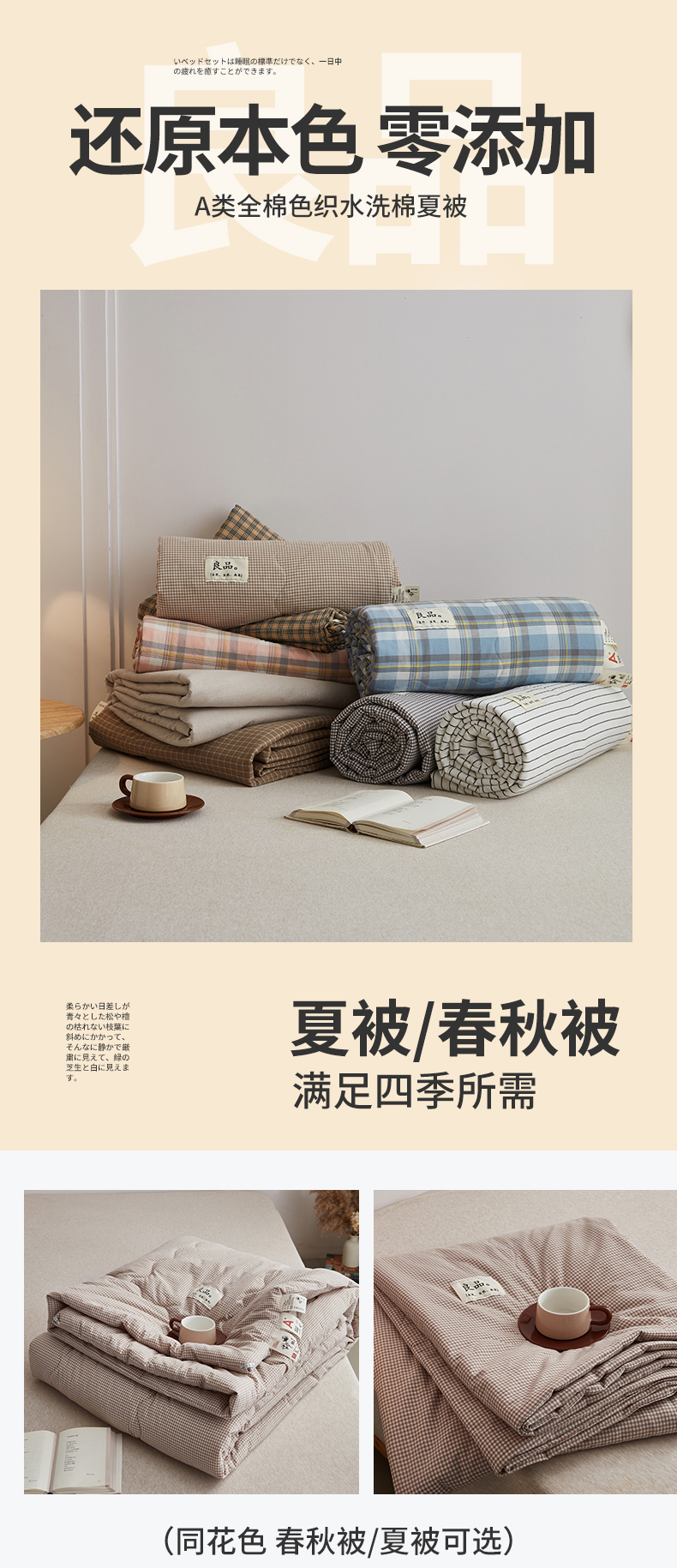 (总)尊妙被业 2026新款全棉色织水洗棉春秋被夏被-叠拍,春野-咖,灰细条,乐事-兰,乐事-绿,蜜格-灰,蜜格-米,莫妮-兰,莫妮-玉,沐妍-黄,千鸟格-灰,千鸟格-驼,童话-粉,晚晴-红,晚晴-咖