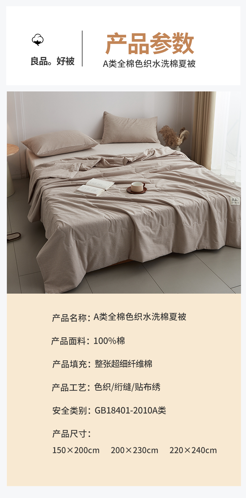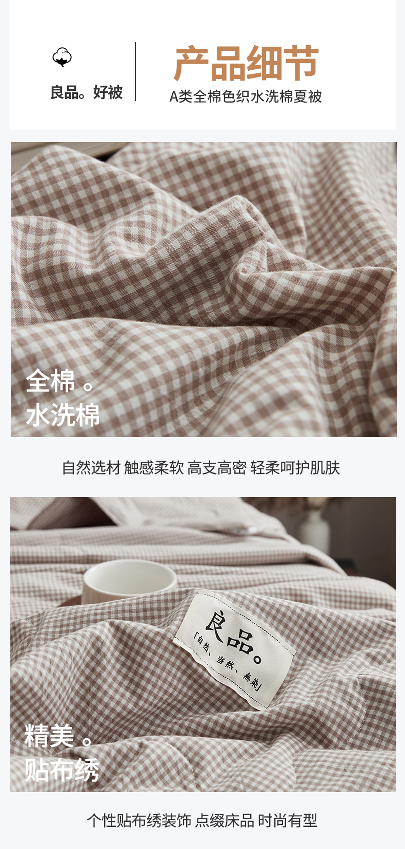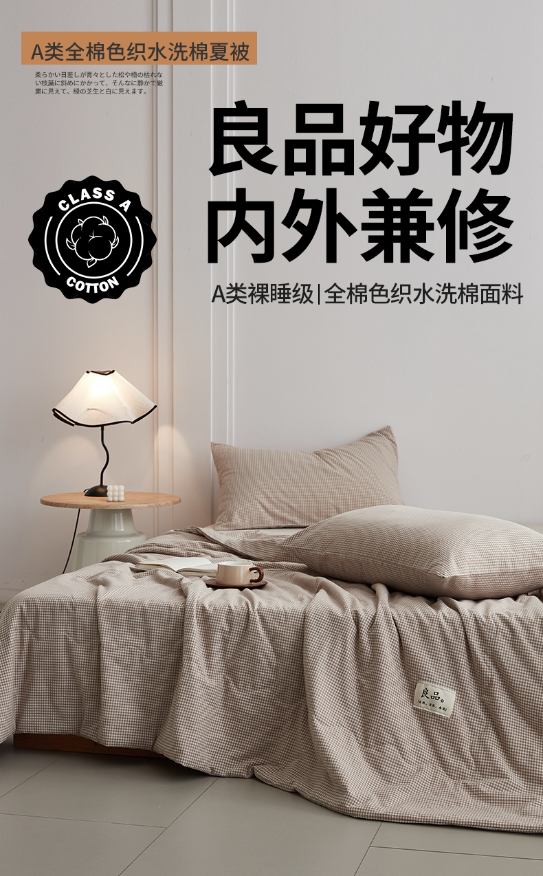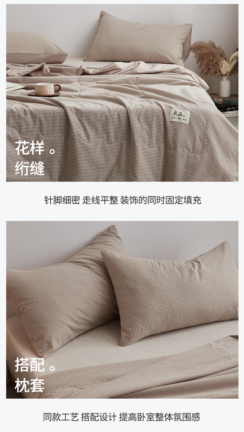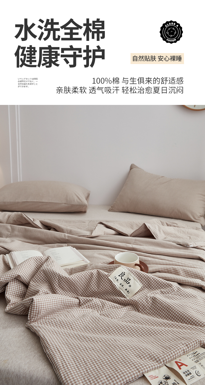 (总)尊妙被业 2026全棉色织水洗全棉棉花夏被 被子被芯 夏被四件套(格子款),贝拉咖,爱格,爱格兰,爱格绿,潮格白,粉小格,咖小格,蓝小格,绿小格