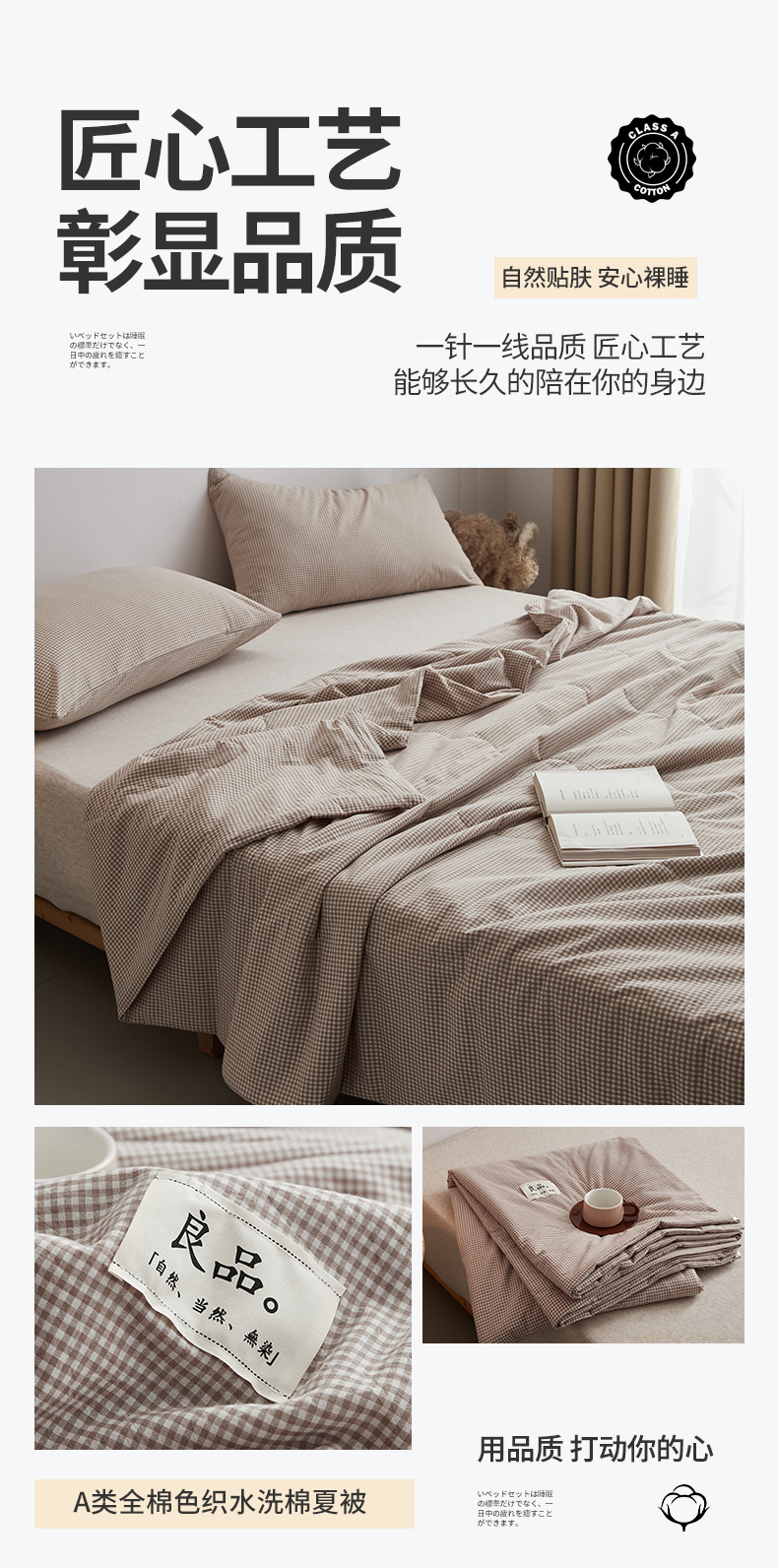 尊妙被业 2026新款全棉色织水洗棉春秋被夏被-叠拍 蜜格-米