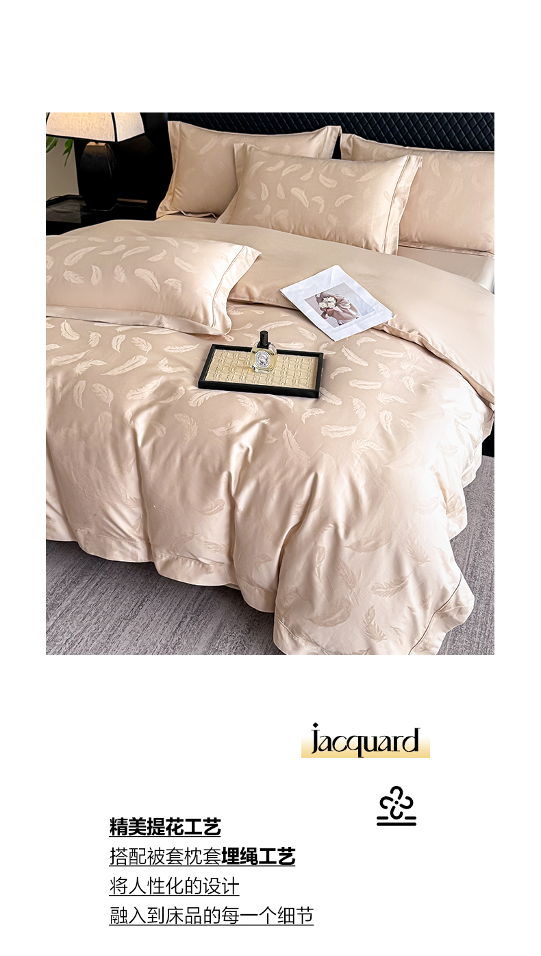 森林雨 【翡-鎏光】2026高端双股50S新疆长绒棉提花埋绳工艺款四件套 轻羽-啤酒金