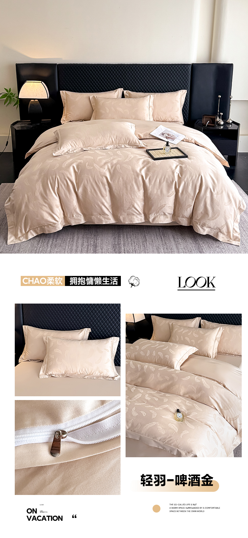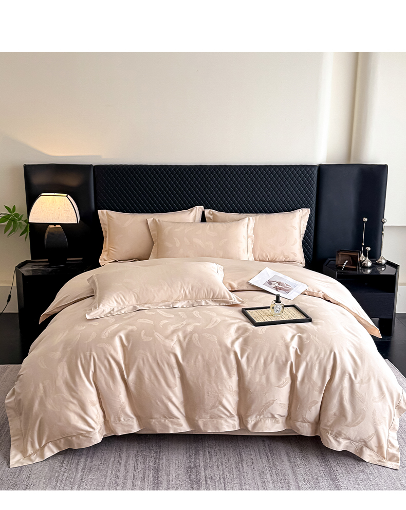 商品名称:森林雨 【翡-鎏光】2026高端双股50S新疆长绒棉提花埋绳工艺款四件套 轻羽-啤酒金