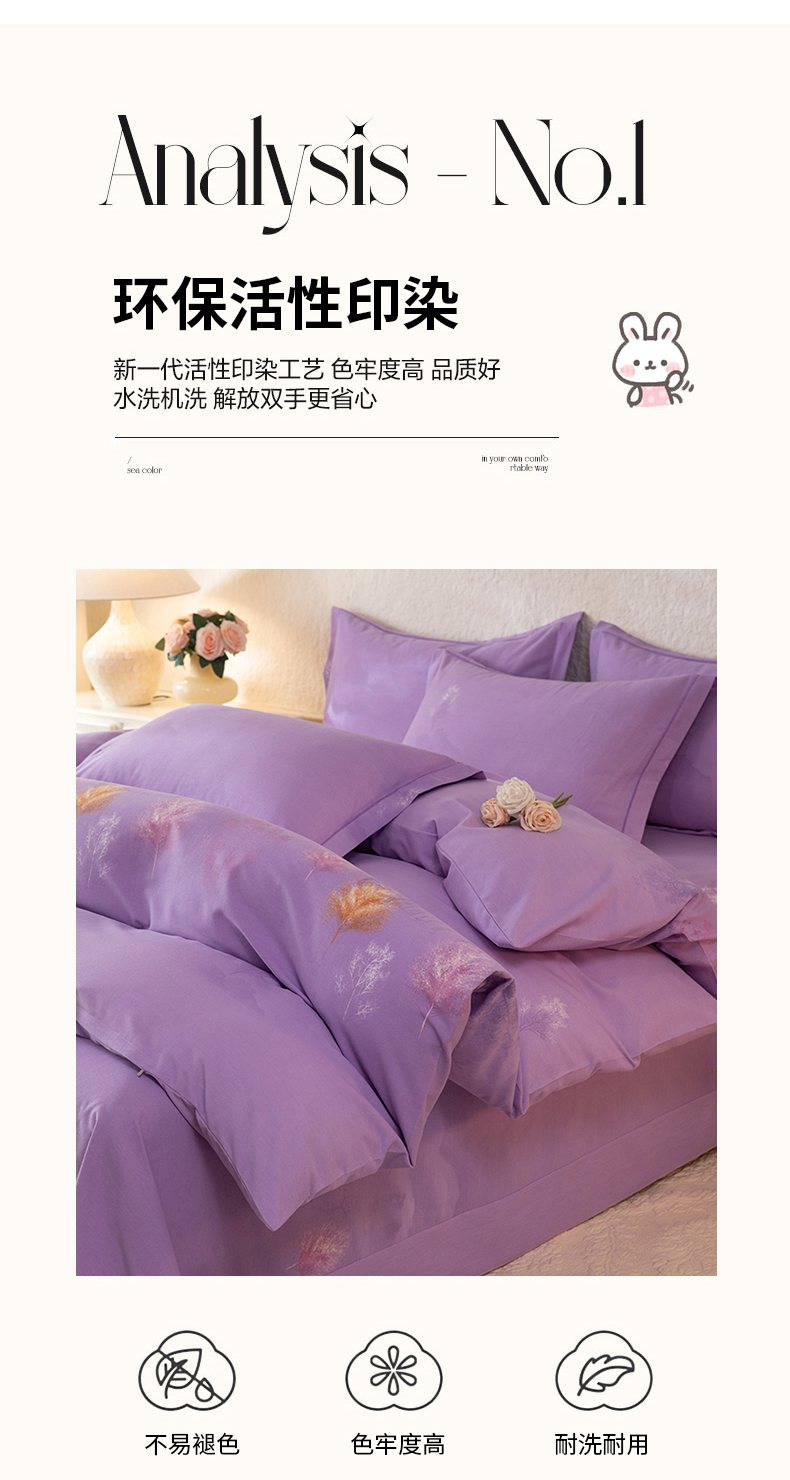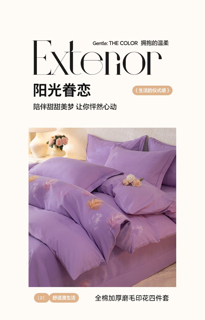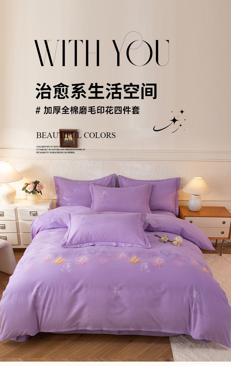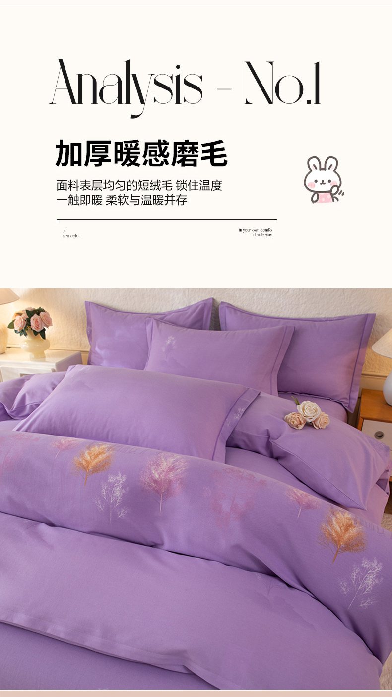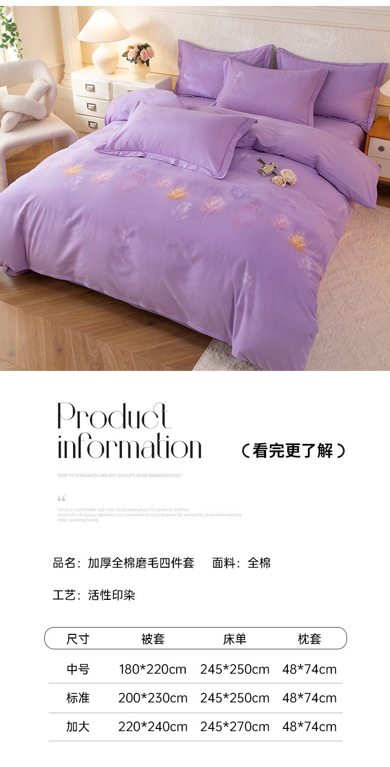 商品名称:磨毛世家家纺 2026新款铂金磨毛纯棉加厚全棉磨毛四件套 城南往事-紫