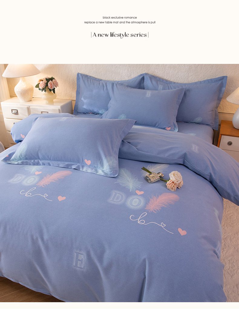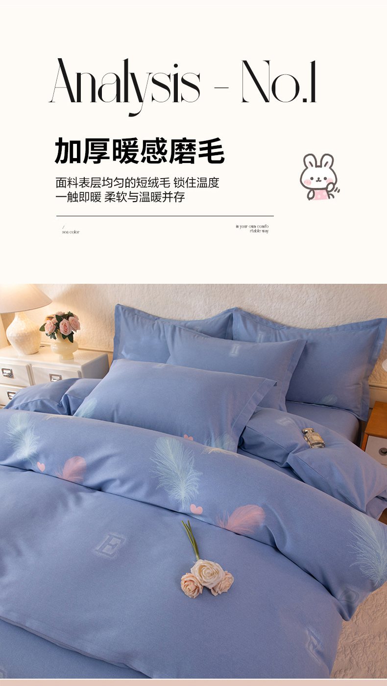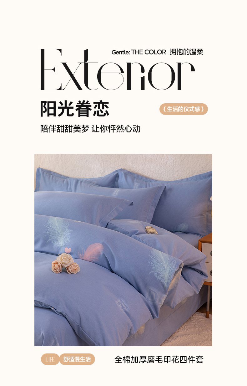 磨毛世家家纺 2026新款铂金磨毛纯棉加厚全棉磨毛四件套 永恒之羽-蓝