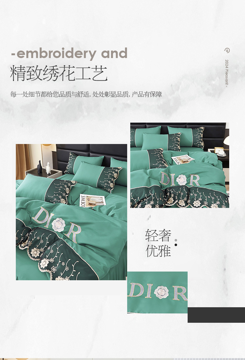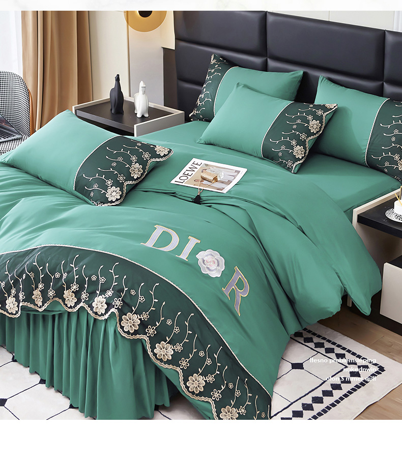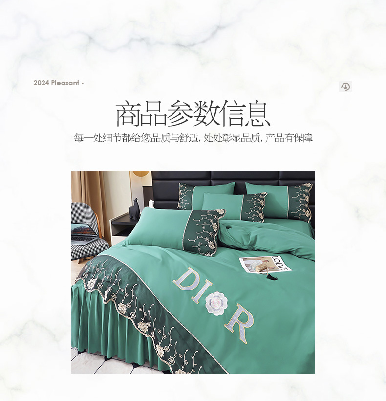 当前位置: 91家纺网 > 商品网购 > 床品套件 > 四件套 > 其它四件套 > 沐珩家纺 2026新款亲肤磨毛蕾丝刺绣床裙四件套-蒂欧系列 蒂欧-雅致绿