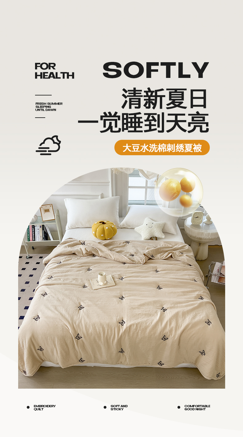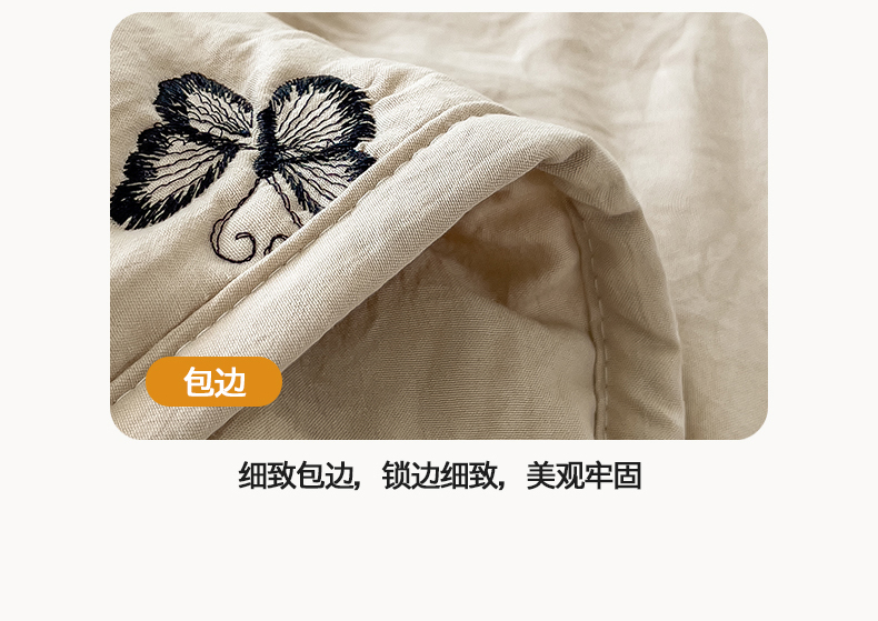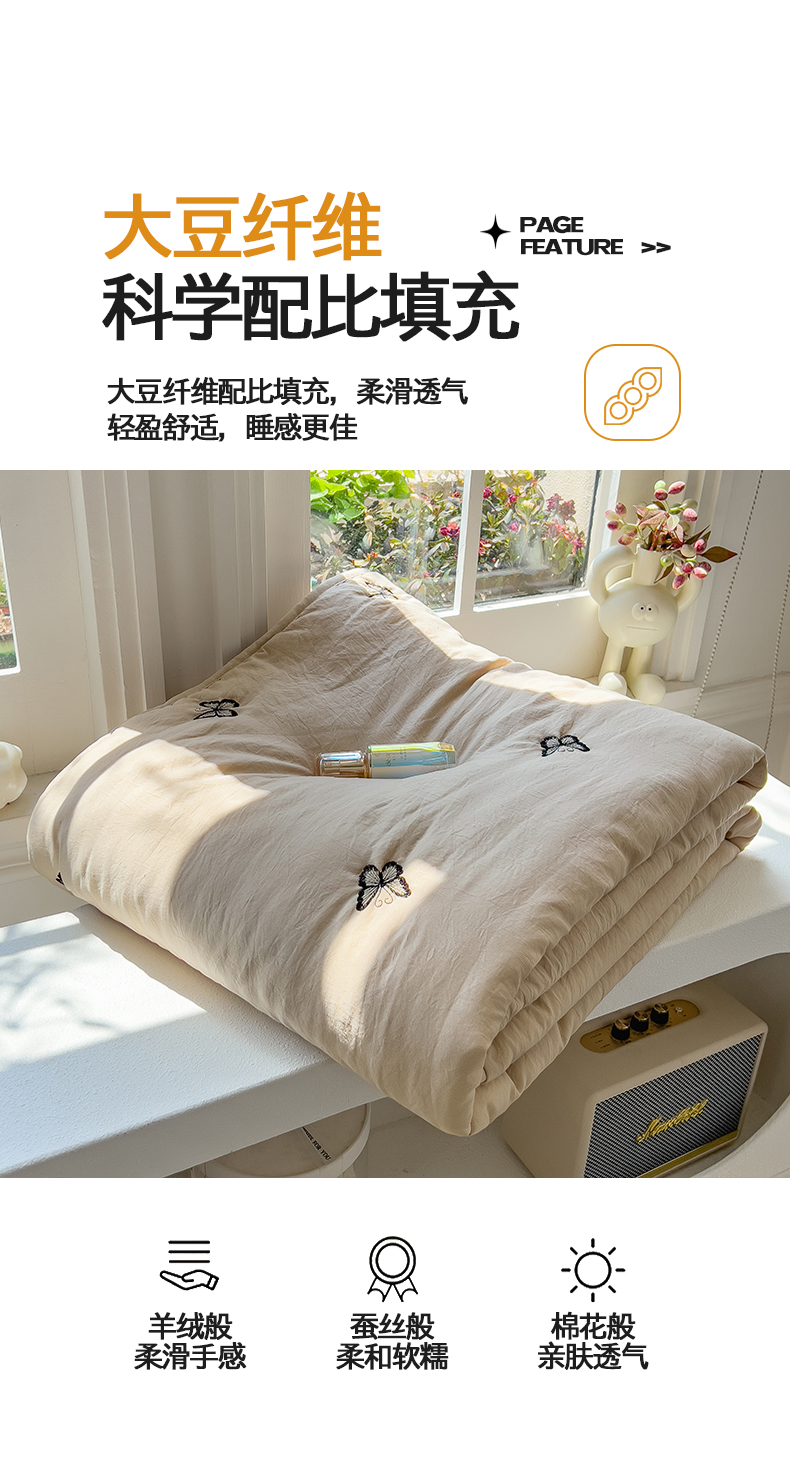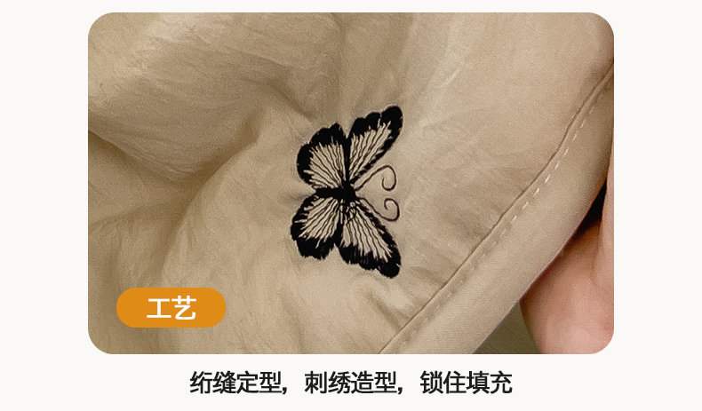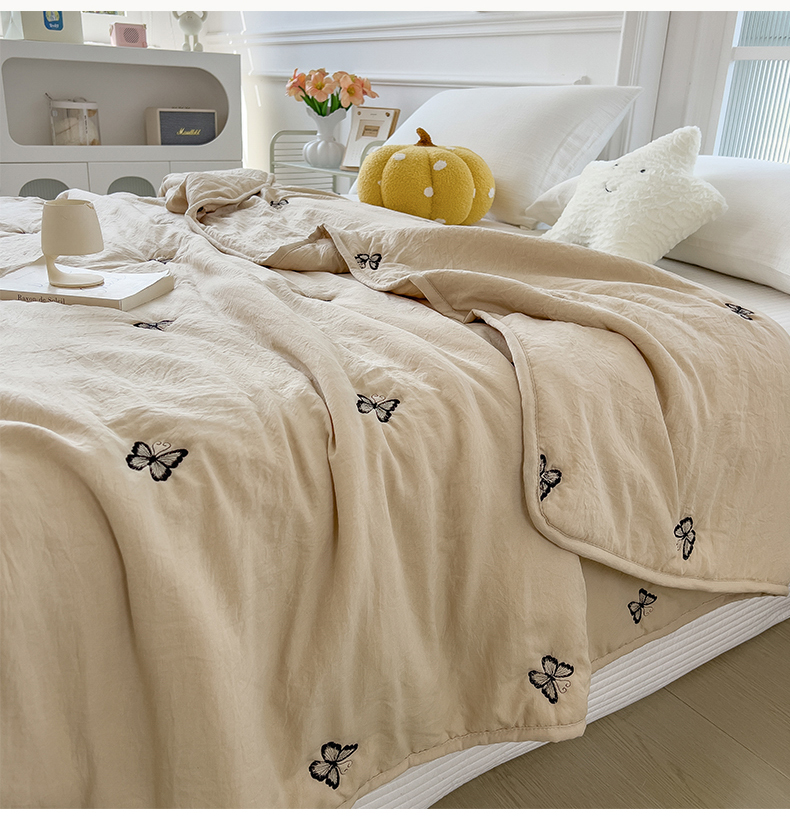 商品名称:兄弟坊 2026新款水洗棉大豆刺绣夏被夏凉被空调被午睡被 蝴蝶-卡其