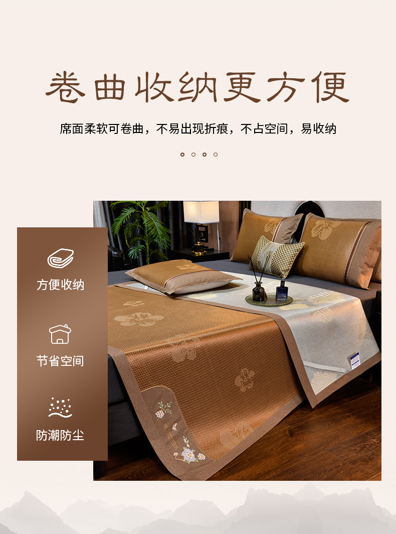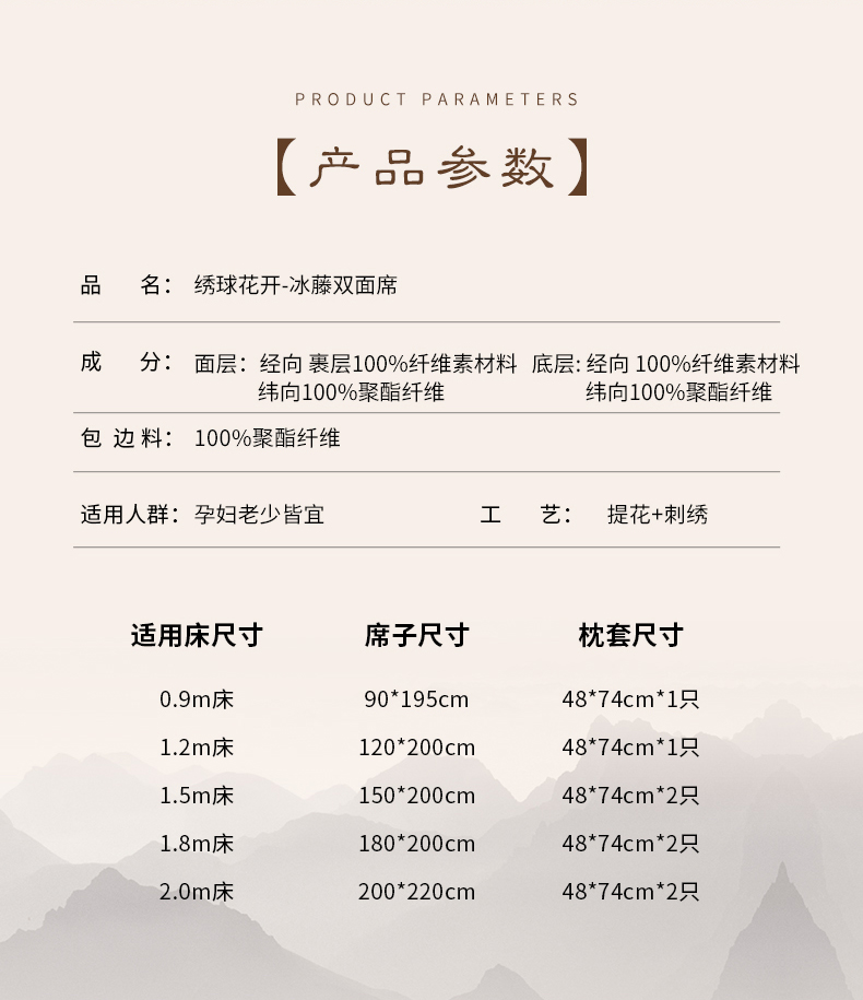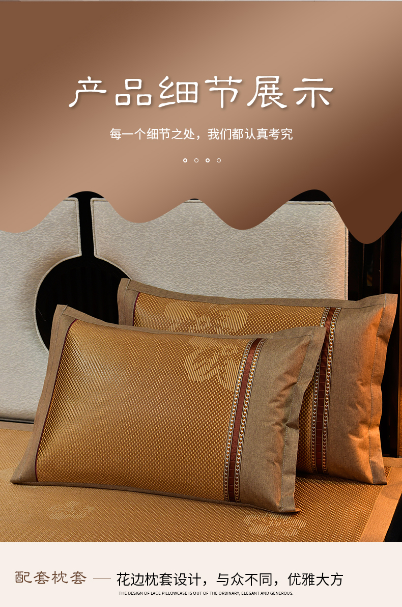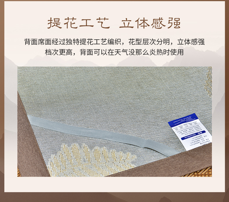 商品名称:小牛席业 2026新款绣球花开-冰藤双面席凉席藤席冰藤席竹席空调席草席冰丝席豆豆席乳胶席三件套 绣球花开-提花咖色