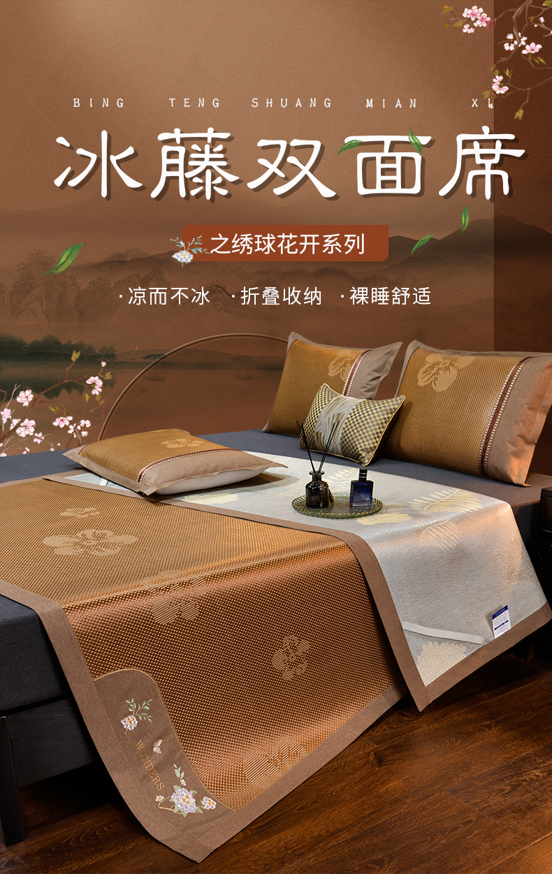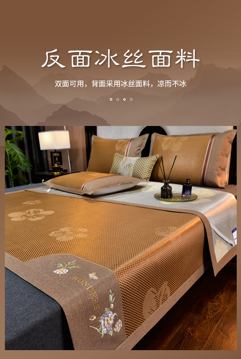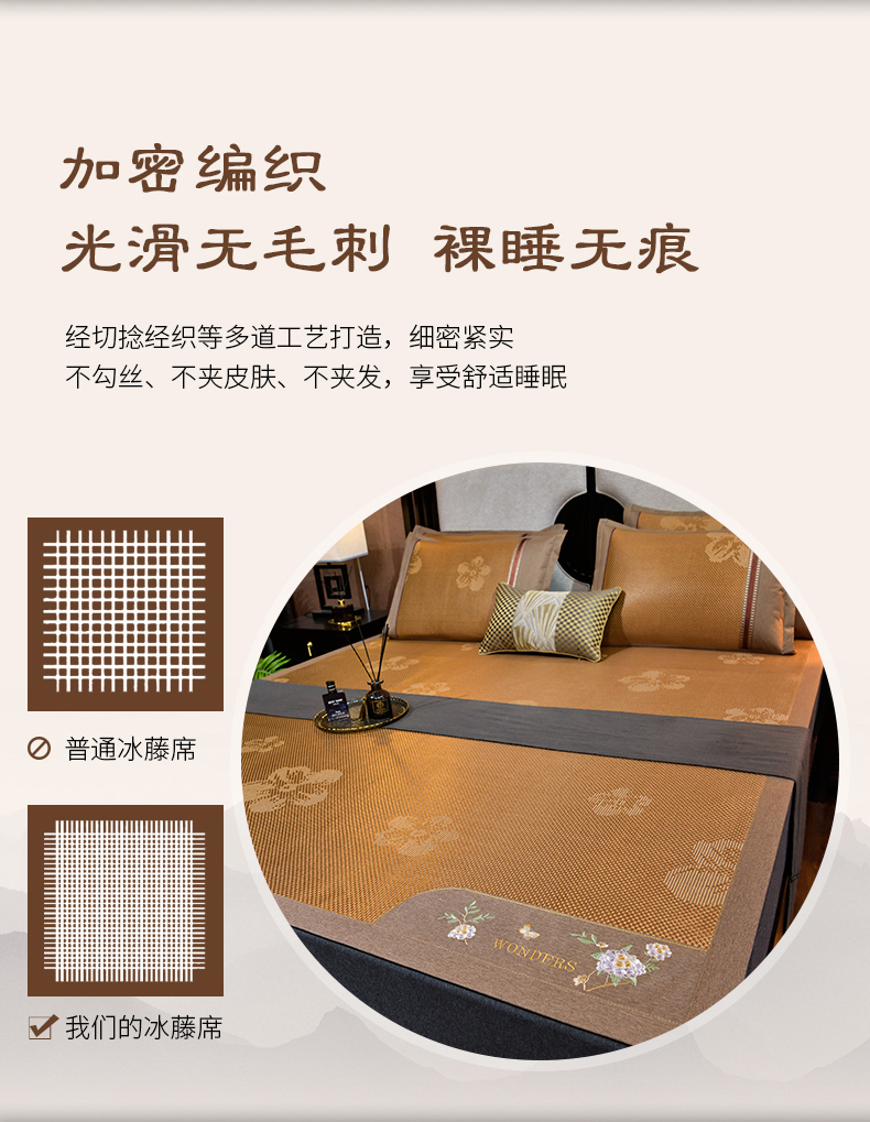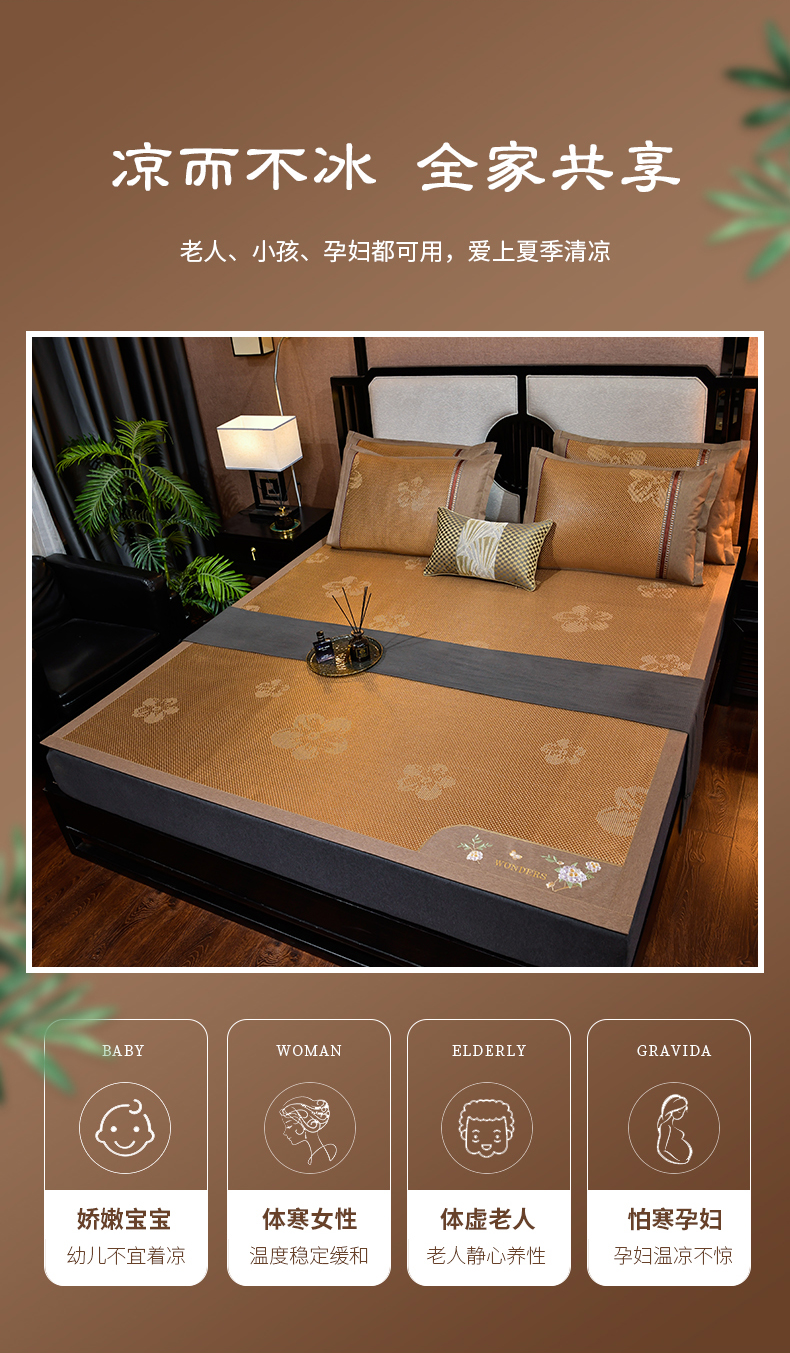 2023新款夏日冰点-冰藤双面席凉席藤席竹席冰丝席乳胶席,咖色,蓝色,绿色,香槟
