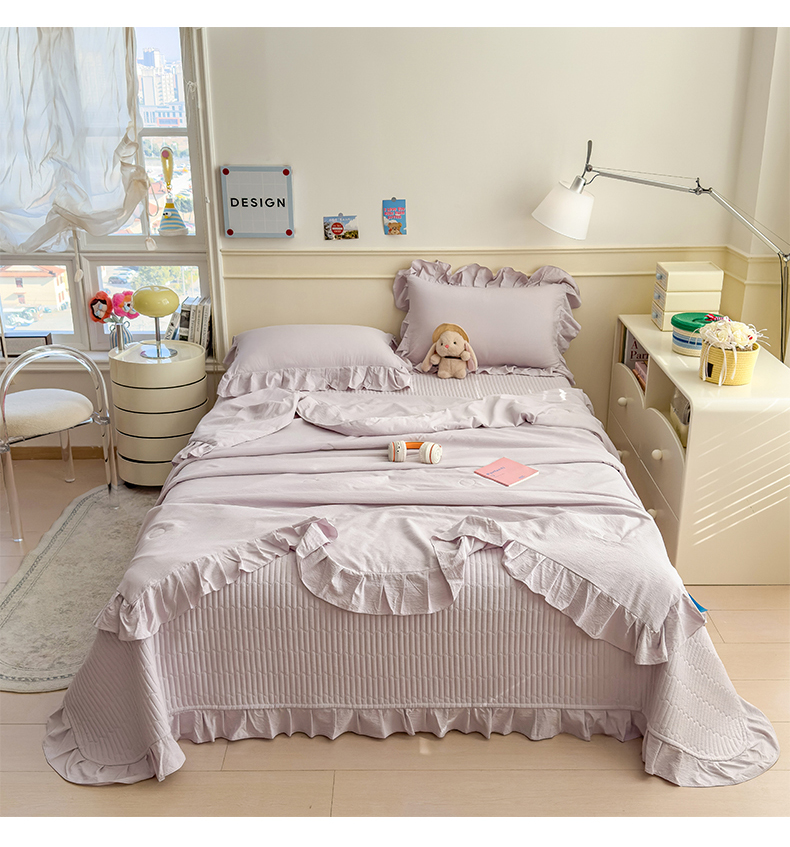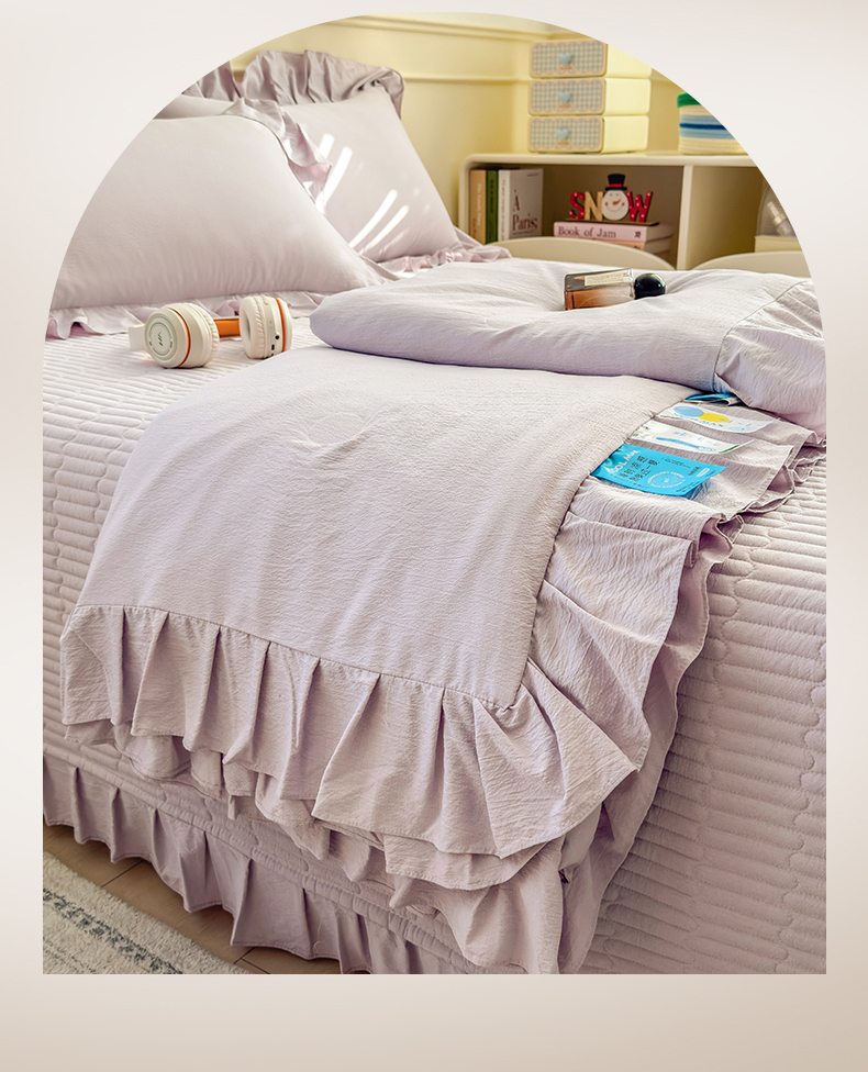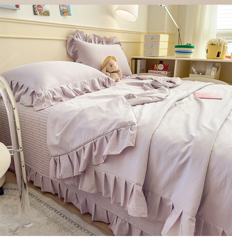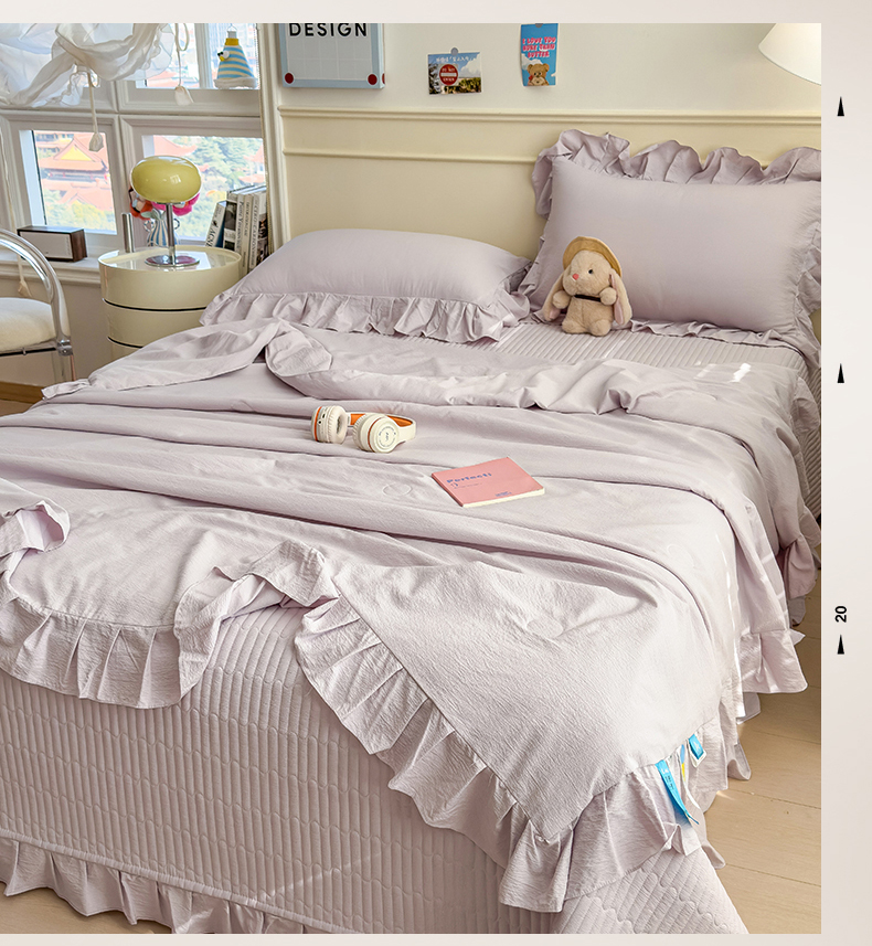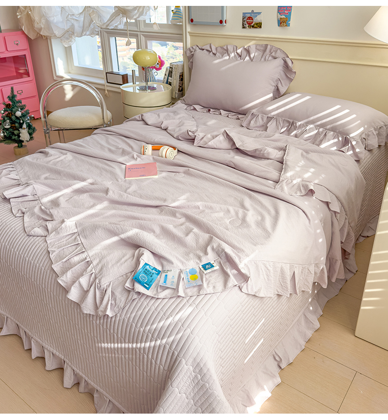 (总)兄弟坊 2026新款韩版凉感皱皱绵花边夏被床盖四件套,凉感皱皱绵-香芋紫,凉感皱皱绵-天空蓝,凉感皱皱绵-橄榄绿,凉感皱皱绵-烟灰,凉感皱皱绵-玉色,组合