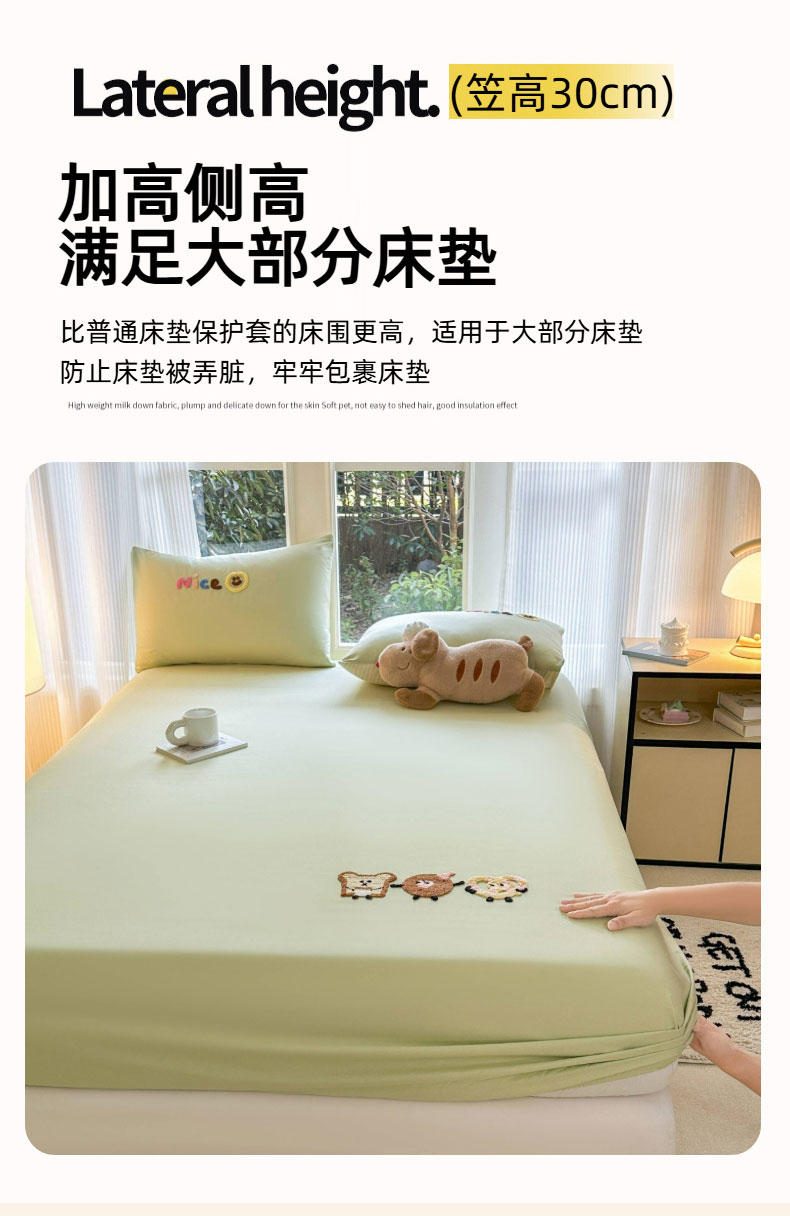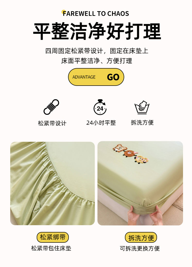 • 91家纺网 家纺一手货源 找家纺 布柔 2026新款纯棉全棉纯棉床笠纯色绣花卡通床笠床垫保护套罩 奶油绿