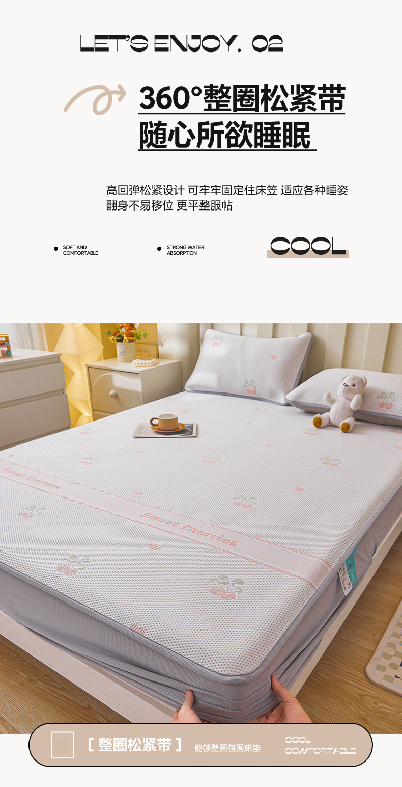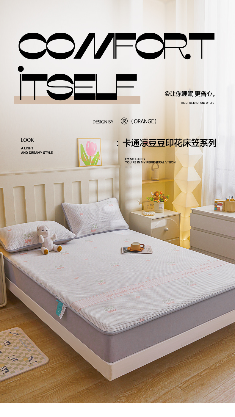 商品名称:凯罗 2026春夏凉豆豆小红书爆款A类乙纶PE凉豆豆床笠款可水洗床笠 樱桃芝芝