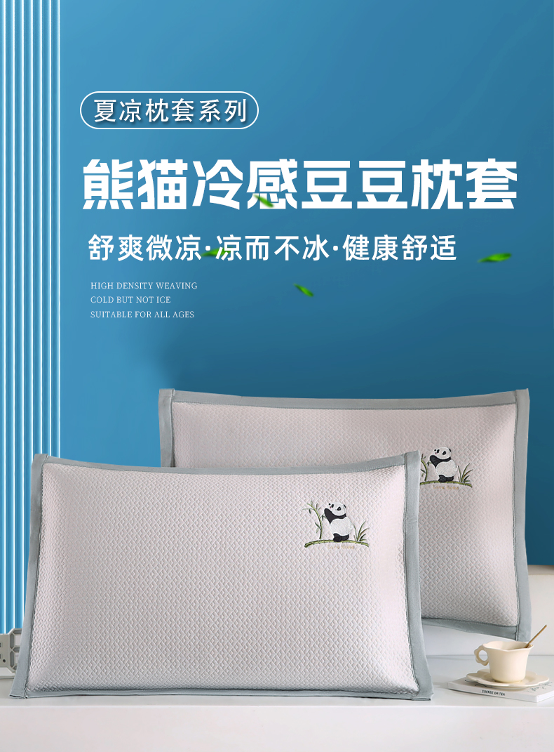 • 91家纺网 家纺一手货源 找家纺 小牛席业 2026新款爱家熊猫冷感豆豆夏凉枕套系列凉枕套凉枕套冰丝枕套藤枕套冰藤枕套冰丝枕套竹枕套凉席枕套豆豆 米色