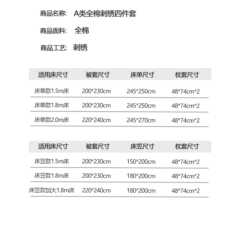 商品名称:(总)润锦云 2026新款A类全棉纯棉刺绣四件套-花漾