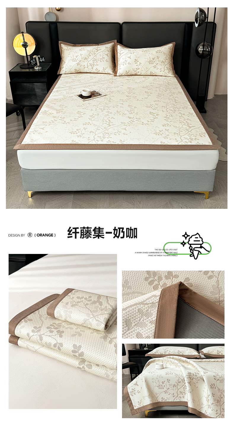 商品名称:凯罗 2026新款凉豆豆简约时尚风凉感豆豆凉席床席床笠-床席款 鹿漫漫-奶咖