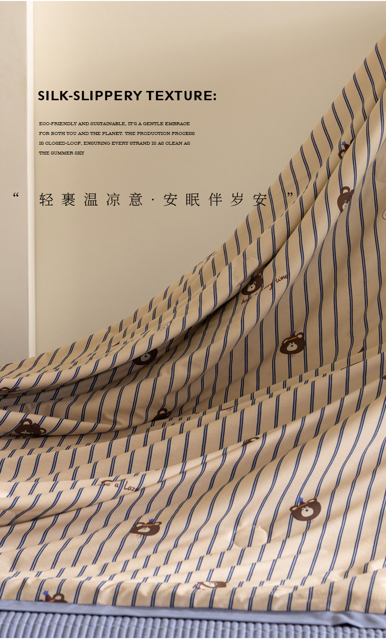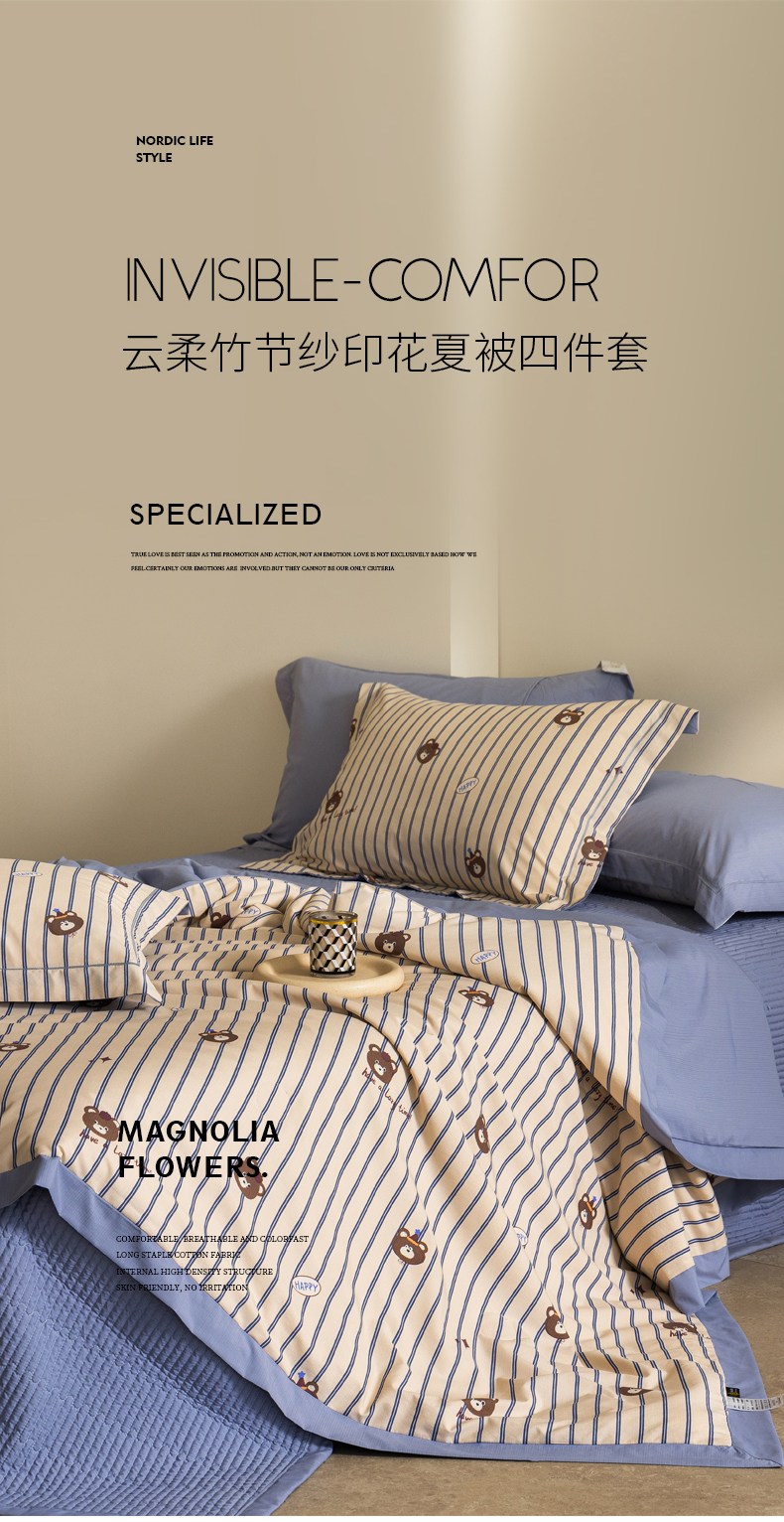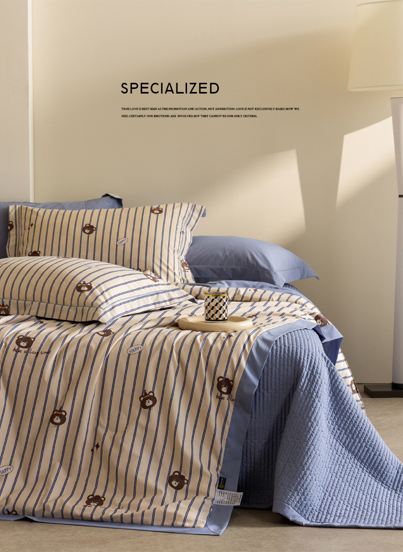 • 91家纺网 家纺一手货源 找家纺 立奥被业 2026新品冰丝棉夏被四件套竹节纱夏被四件套 欢乐熊宝-蓝