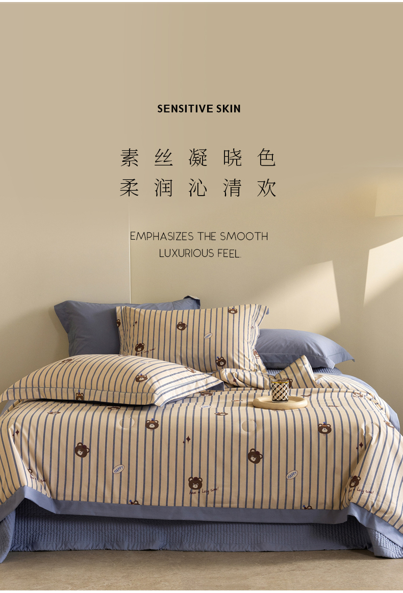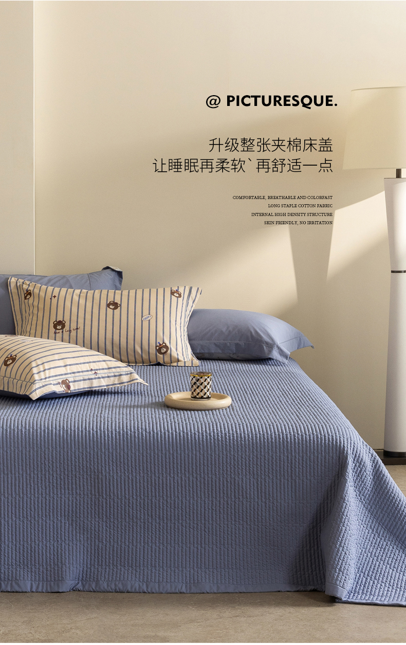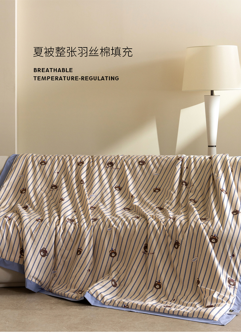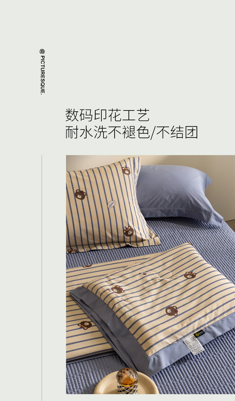 • 91家纺网 家纺一手货源 找家纺 立奥被业 2026新品冰丝棉夏被四件套竹节纱夏被四件套 欢乐熊宝-蓝