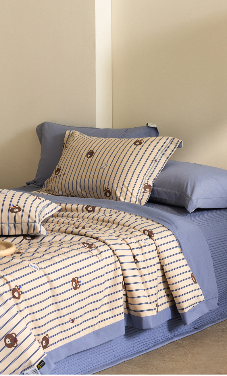 当前位置: 91家纺网 > 商品网购 > 被子 > 夏被 > 立奥被业 2026新品冰丝棉夏被四件套竹节纱夏被四件套 欢乐熊宝-蓝