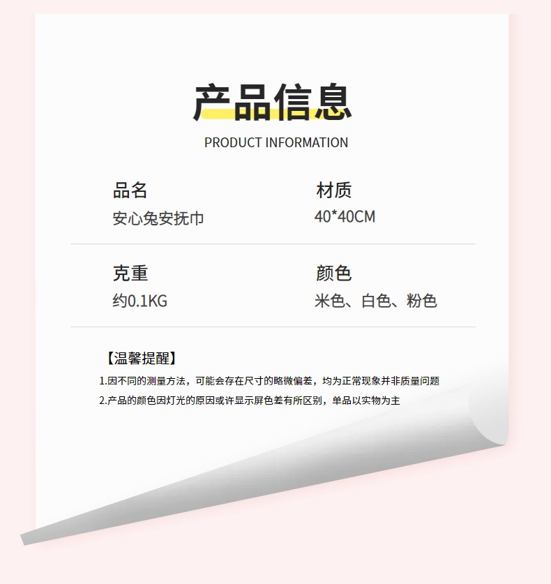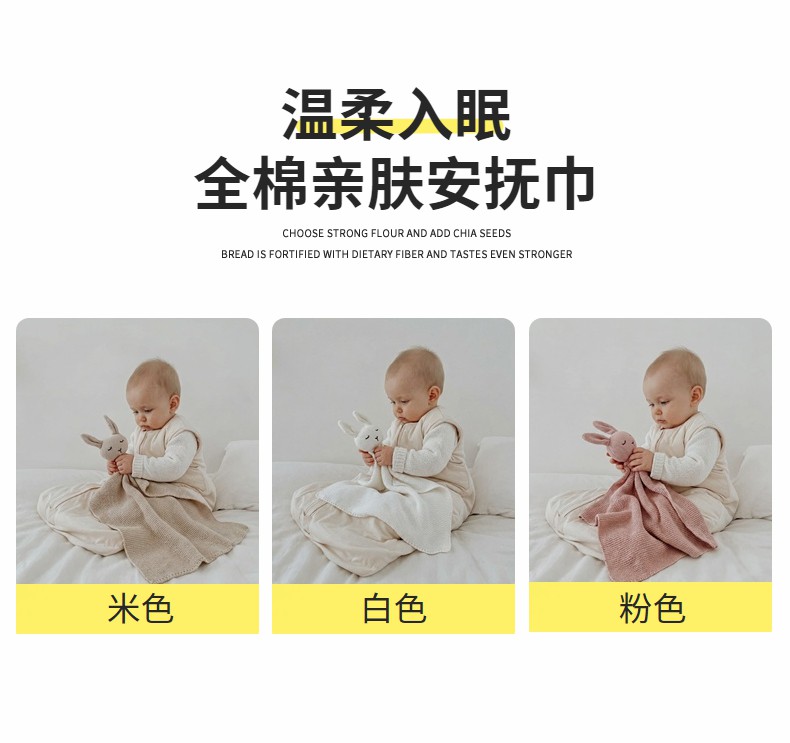 商品名称:(总)暖绵绵家纺 2026新款宝宝的好玩伴萌兔安抚巾新生儿陪睡软玩偶-安心兔