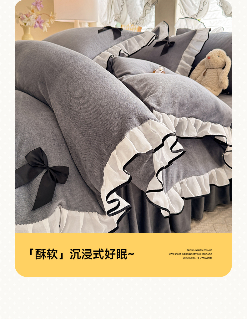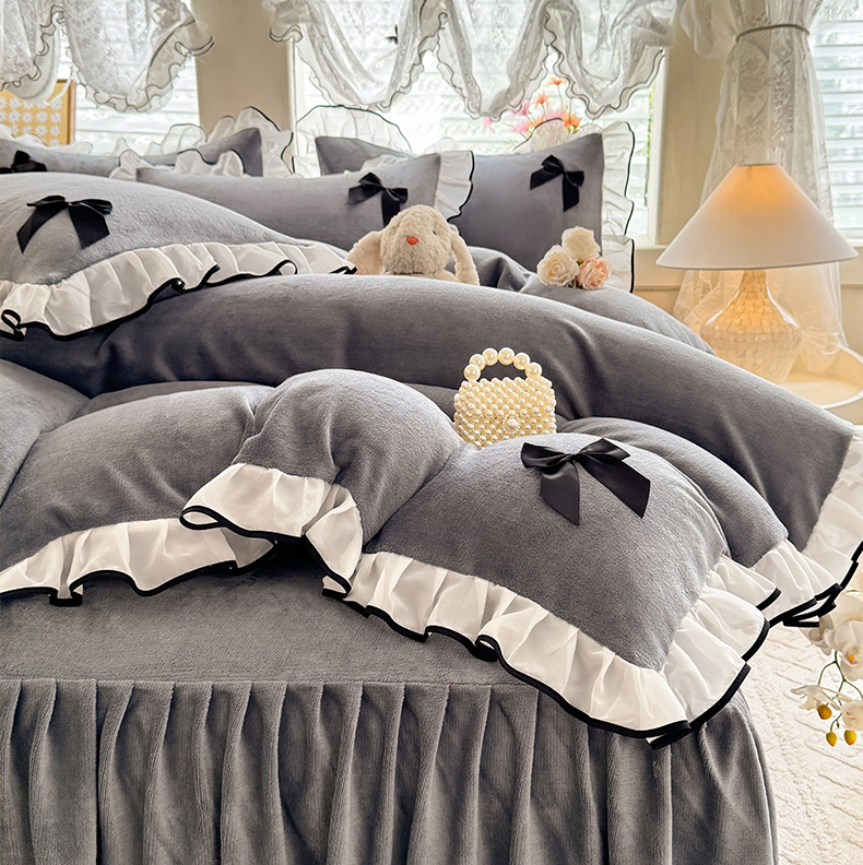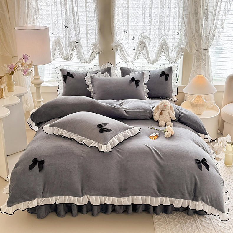 商品名称:沐珩家纺 2026新款高克重加厚保暖牛奶绒四件套-潘多拉系列 潘多拉-灰