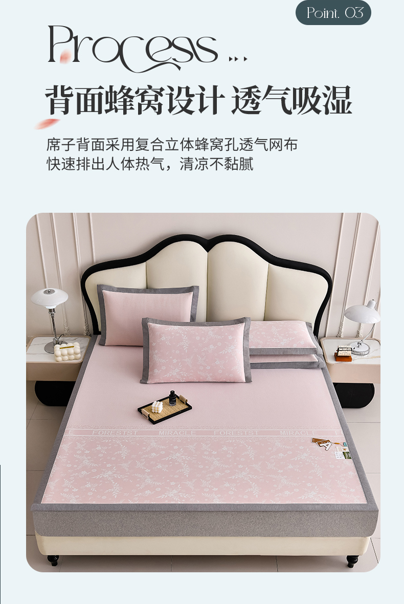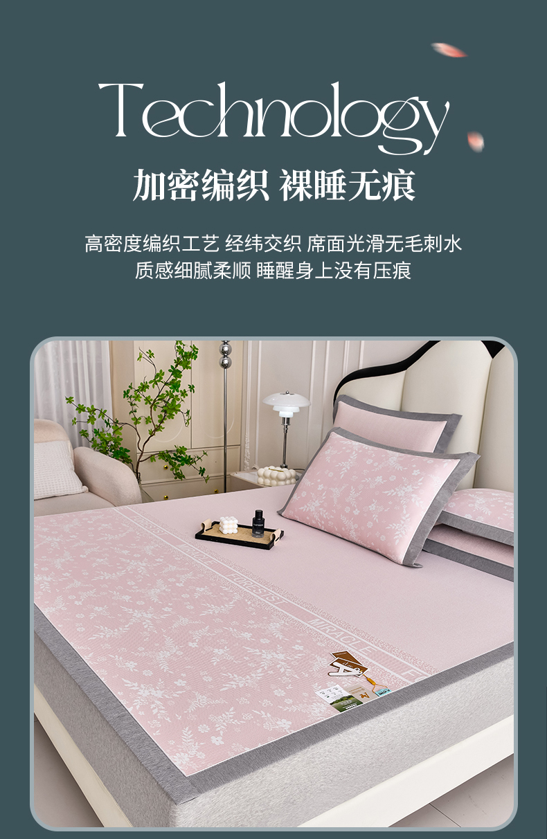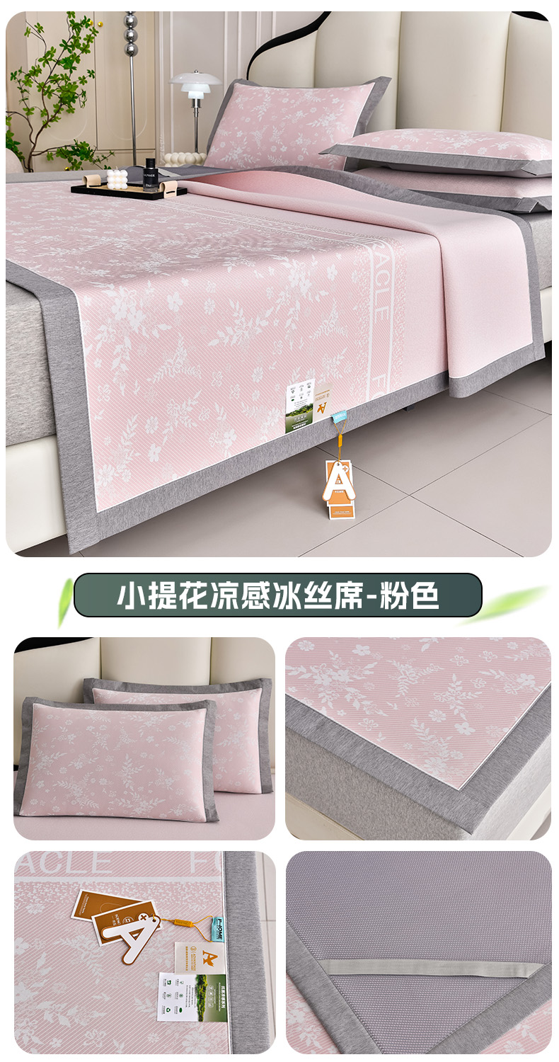(总)2023新款超精密冰丝席-小斜纹系列-床笠款藤席凉席竹席,粉色,蓝色,绿色,银灰