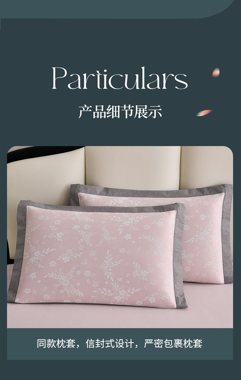 (总)小牛席业 2026春夏新款PE琉璃叶语提花凉感冰丝席席子-床笠款,蓝色,灰色,粉色,香槟