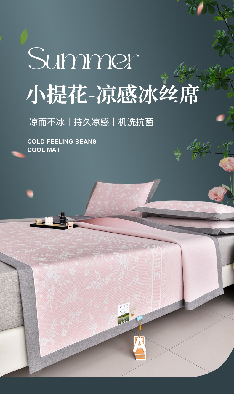 (总)小牛席业 2026新款ALL cool 全凉感绣花凉感冰丝席凉席席子,ALL cool-粉色,ALL cool-灰色,ALL cool-蓝色,ALL cool-香槟