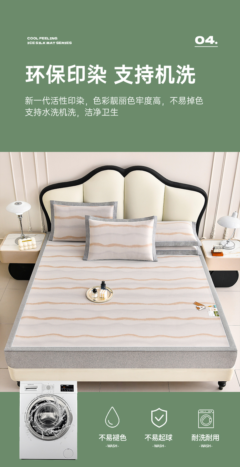 (总)小牛席业 2026新款小冰块大象凉感冰丝席(床笠款)凉席竹席藤席冰藤席乳胶席豆豆席,绿色,粉色,灰色,蓝色,香槟