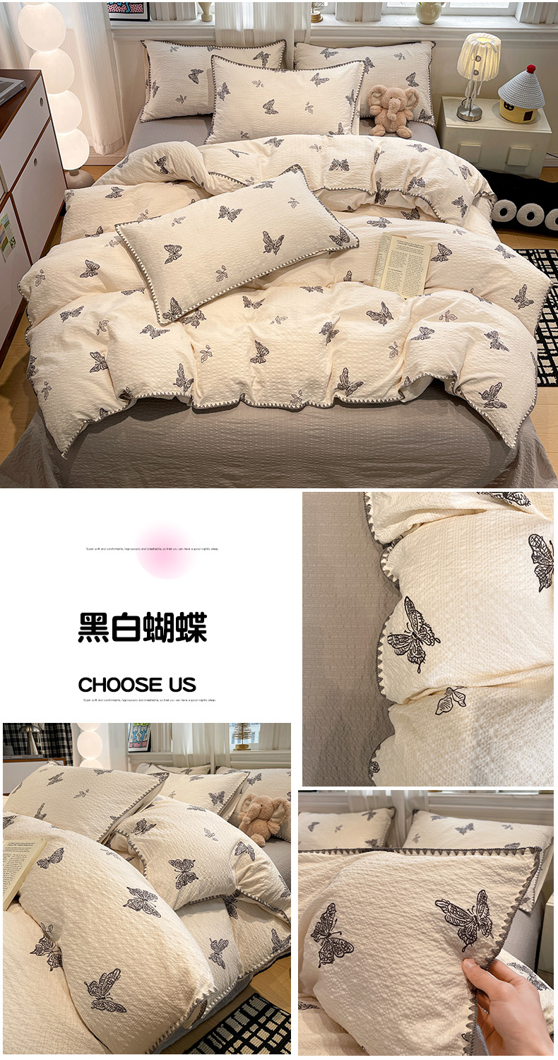 当前位置: 91家纺网 > 商品网购 > 床品套件 > 四件套 > 其它四件套 > 一比一家纺 2026新款云感泡芙棉小清新印花贝壳边四件套 豹纹凯蒂