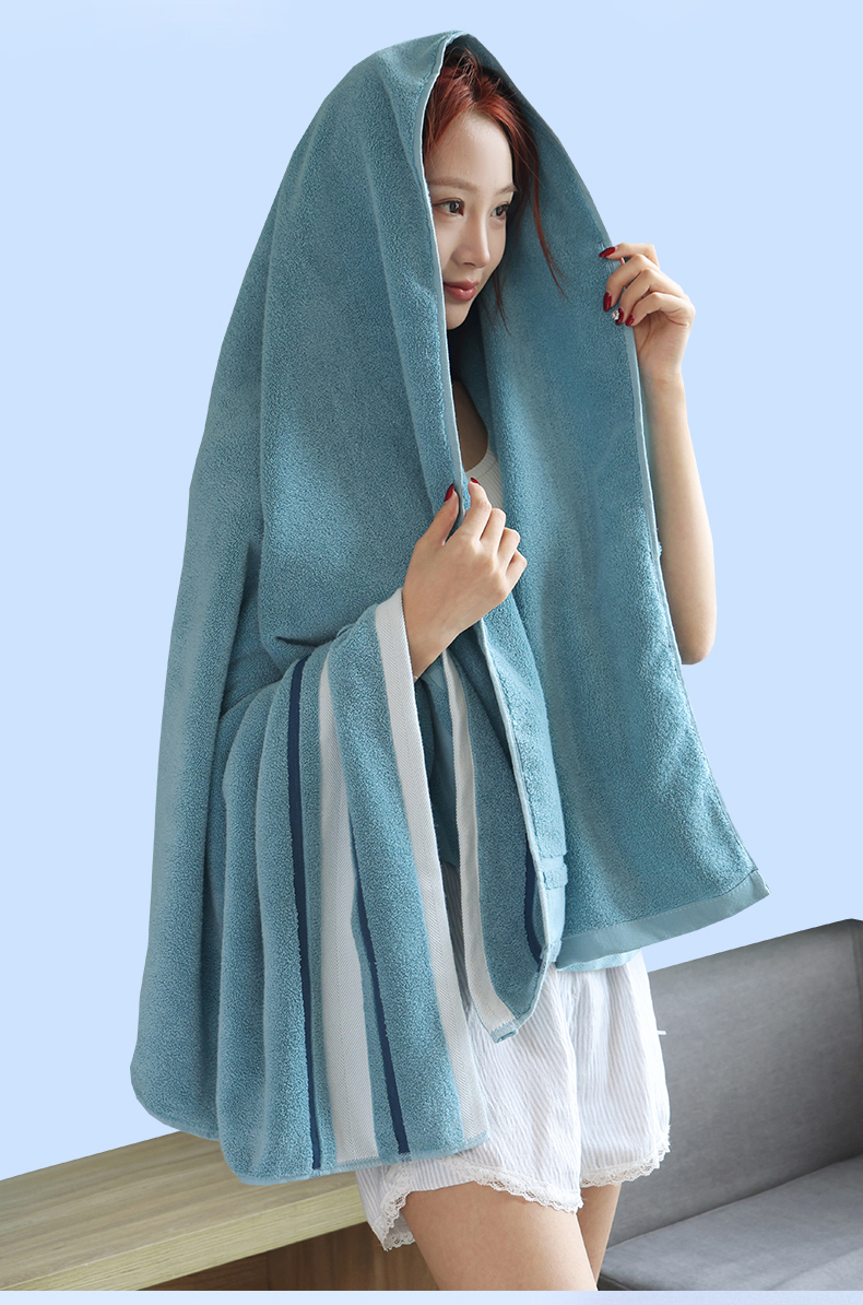 朴尔家纺-毛巾被 2026新款素边全棉缎档加大加厚浴巾 静郁蓝 90*180cm