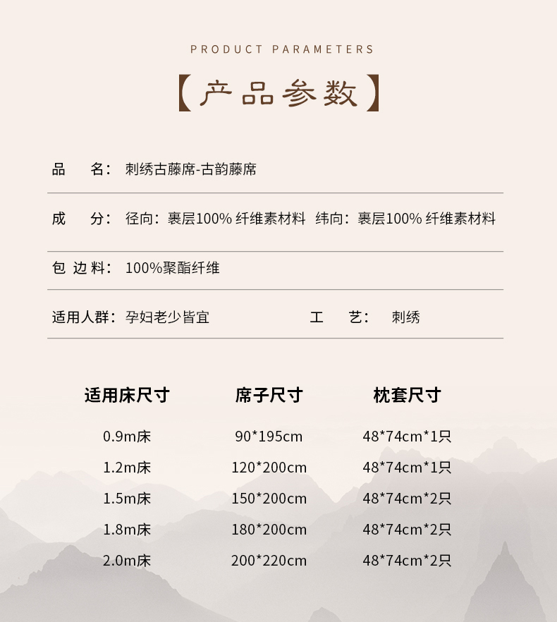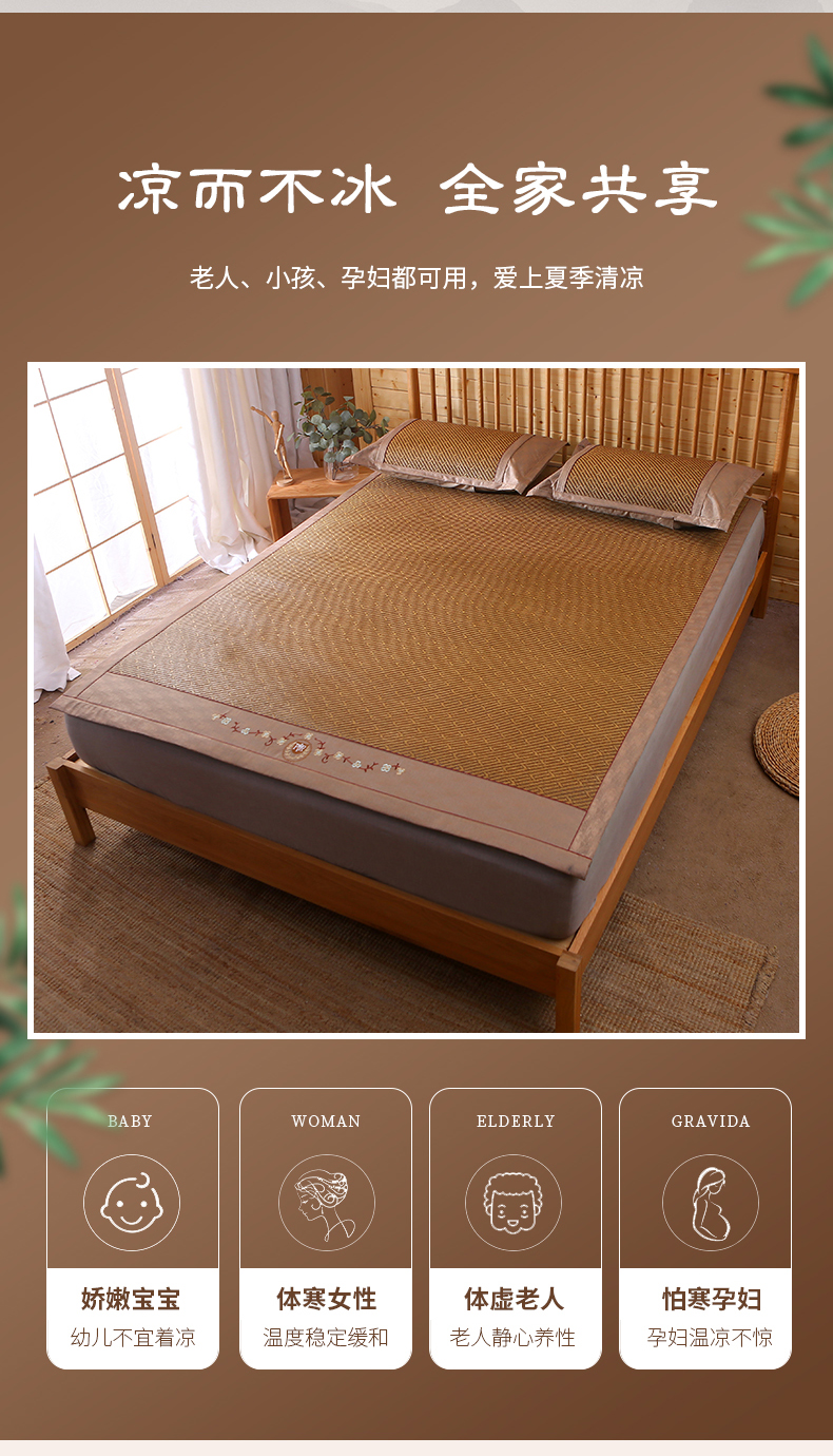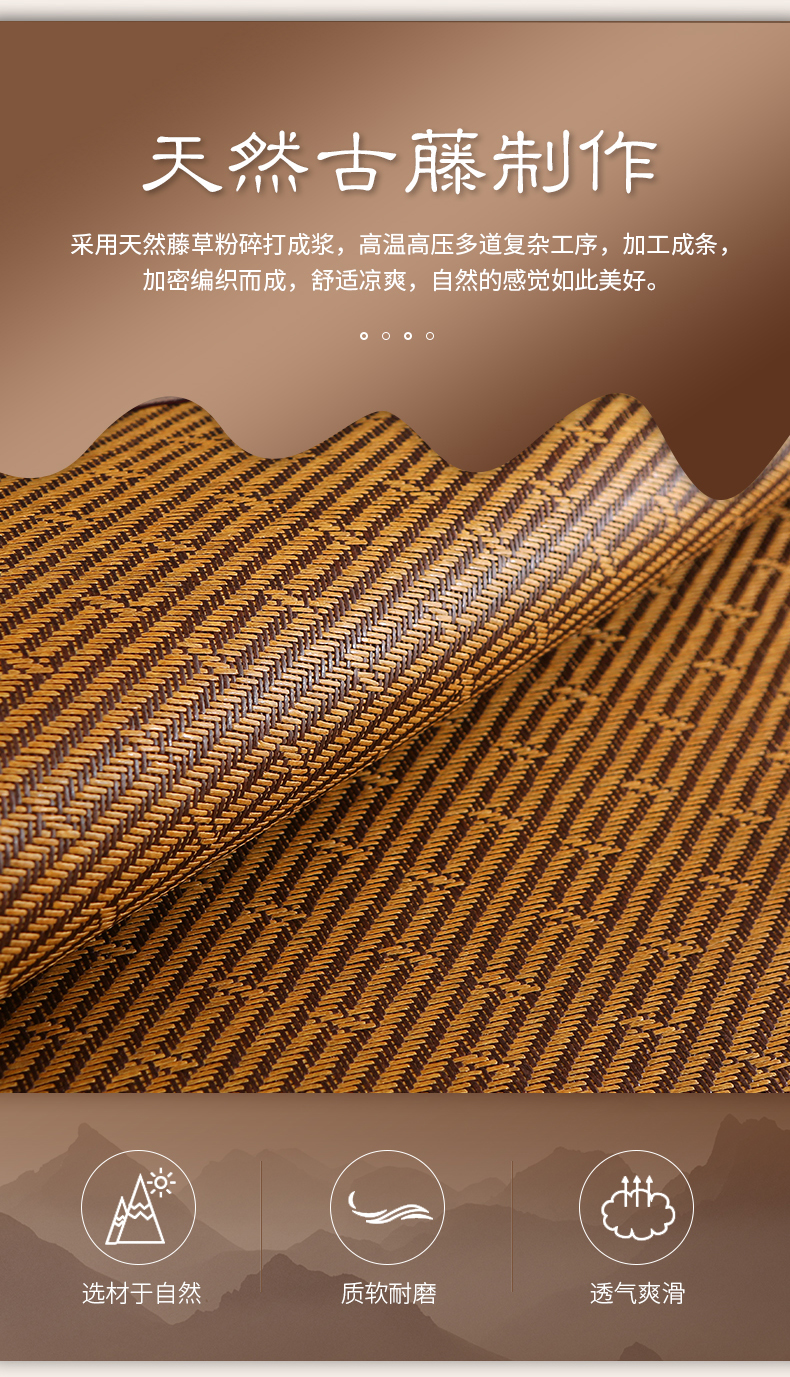 商品名称:小牛席业 2026新款刺绣古藤席【常规款】藤席凉席冰藤席冰丝席乳胶席 古韵藤席