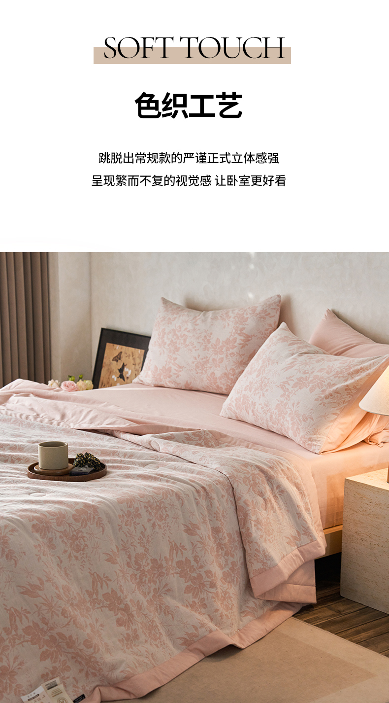 (总)宜代光年 2026新款60S水洗棉全棉纯棉三层纱色织提花夏被四件套系列,繁花-粉,繁花-灰,繁花-咖,繁花-绿,繁花-紫,海棠,林逾静-灰,林逾静-橘,牡丹-粉,牡丹-咖,执笔水墨-灰,执笔水墨-咖