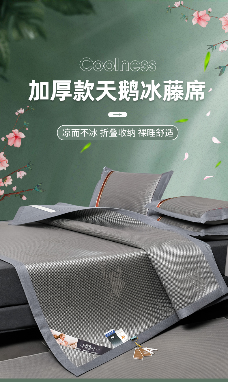 当前位置: 91家纺网 > 商品网购 > 床上用品 > 凉席 > 其他凉席 > 小牛席业 2026新款加厚天鹅冰藤席系列 加厚款-天鹅冰藤席(浅灰)