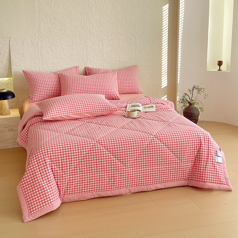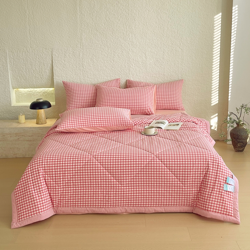 • 91家纺网 家纺一手货源 找家纺 宝士康家纺 2026新款10A抗菌无印风单夏被/夏被四件套 被子被芯 粉小格